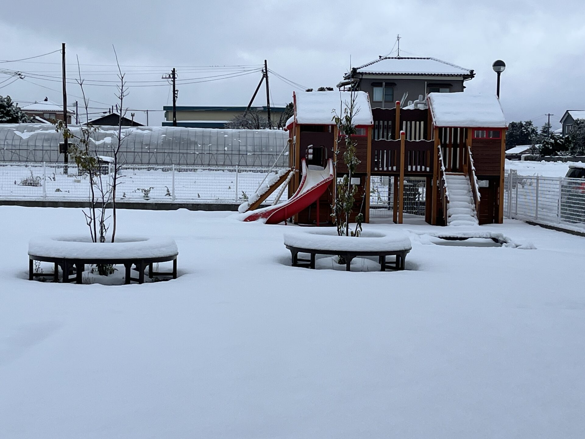 えだまめこども園の、どこもかしこも、真っ白に覆われてしまいました。