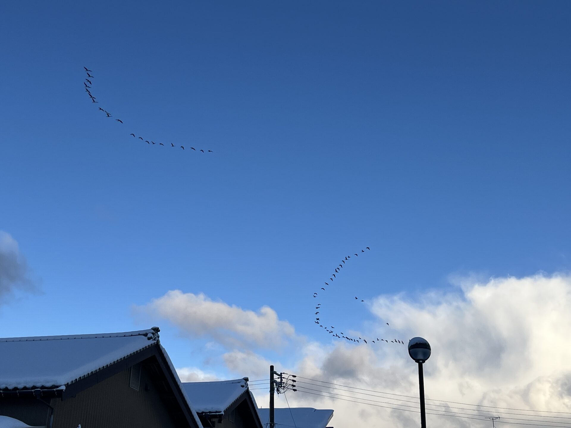 白鳥の群れの飛来。