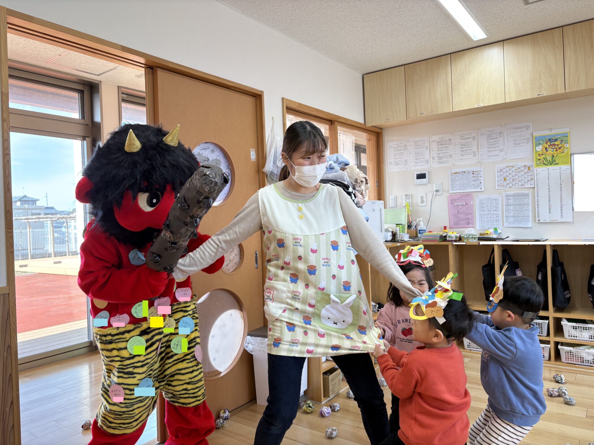 今年は2月2日(日)が節分だったので、3日(月)に豆まきを行いました。