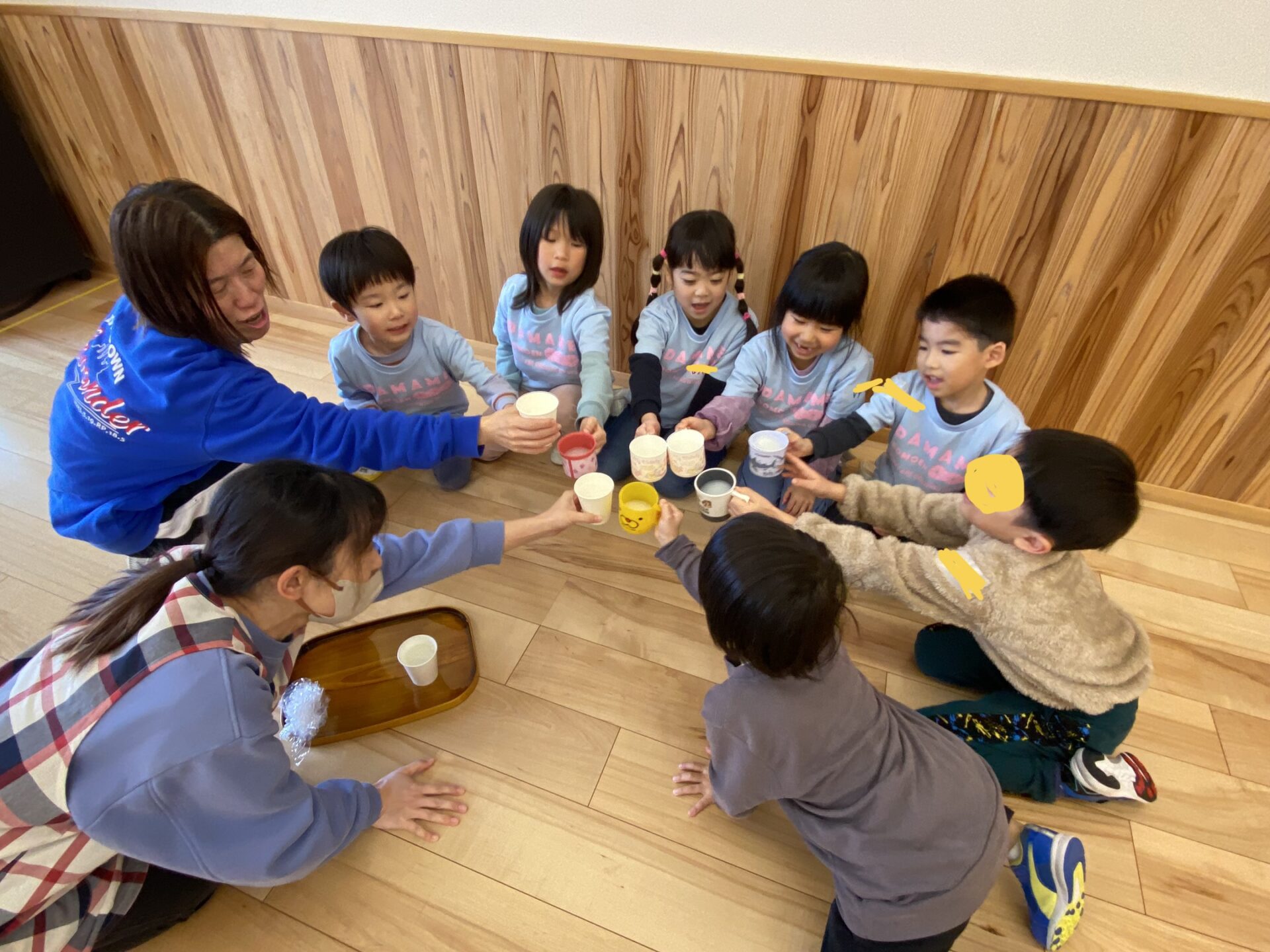 アサヒ飲料から「カルピスひなまつりプレゼント」が届き、今日は、「E-POP」で楽しくダンスをした後、いただきました😊ダンスのなっちゃん先生と、そら・つき組で「かんぱ~い!お疲れ様でした!」と、盛り上がりました💓