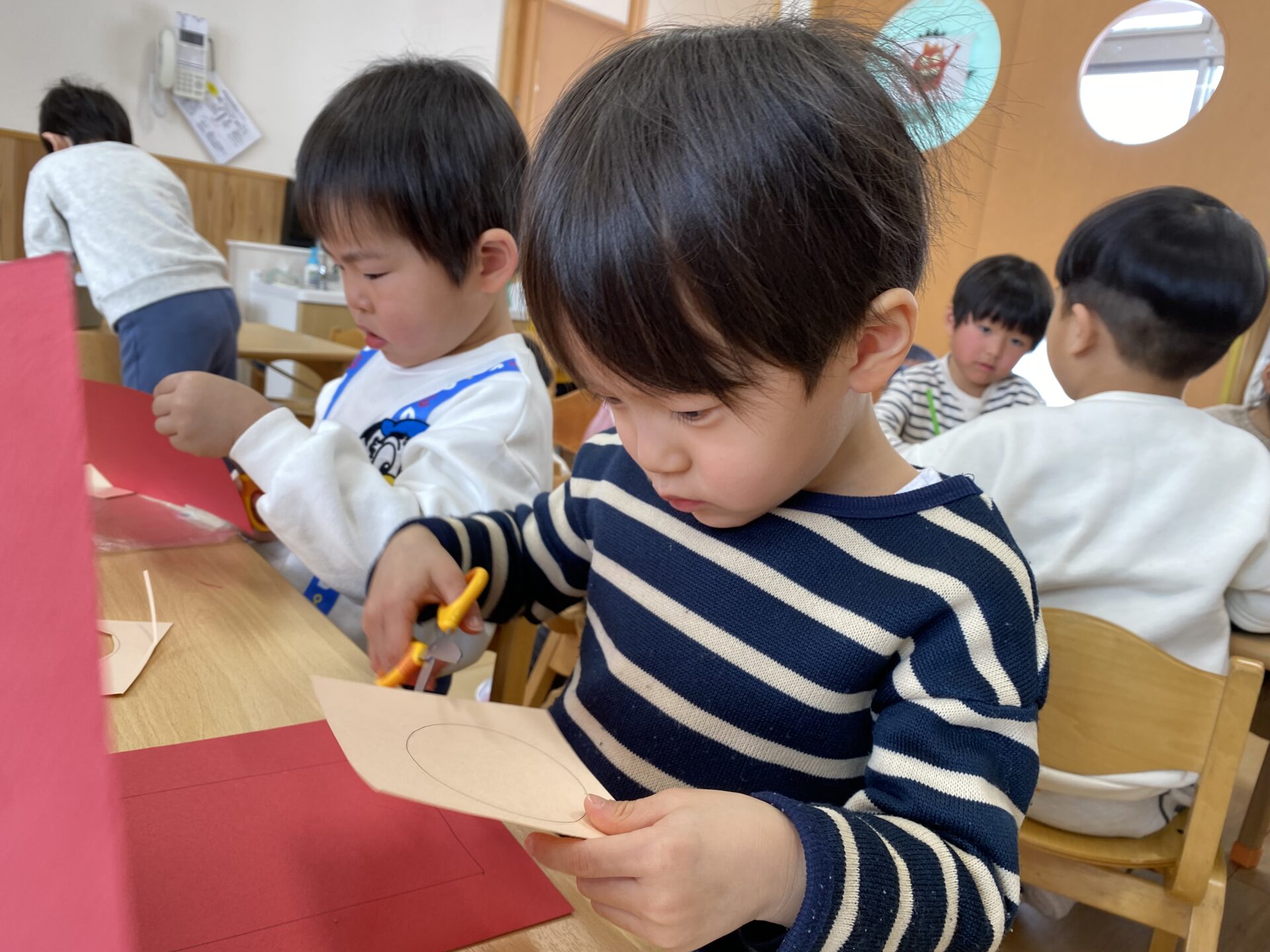 また、今回は初めて円を切ることに挑戦しました✂「むずかしいなぁ」「どうやって切るの??」と言いながらも、一生懸命考えながら最後まで切ることができました。