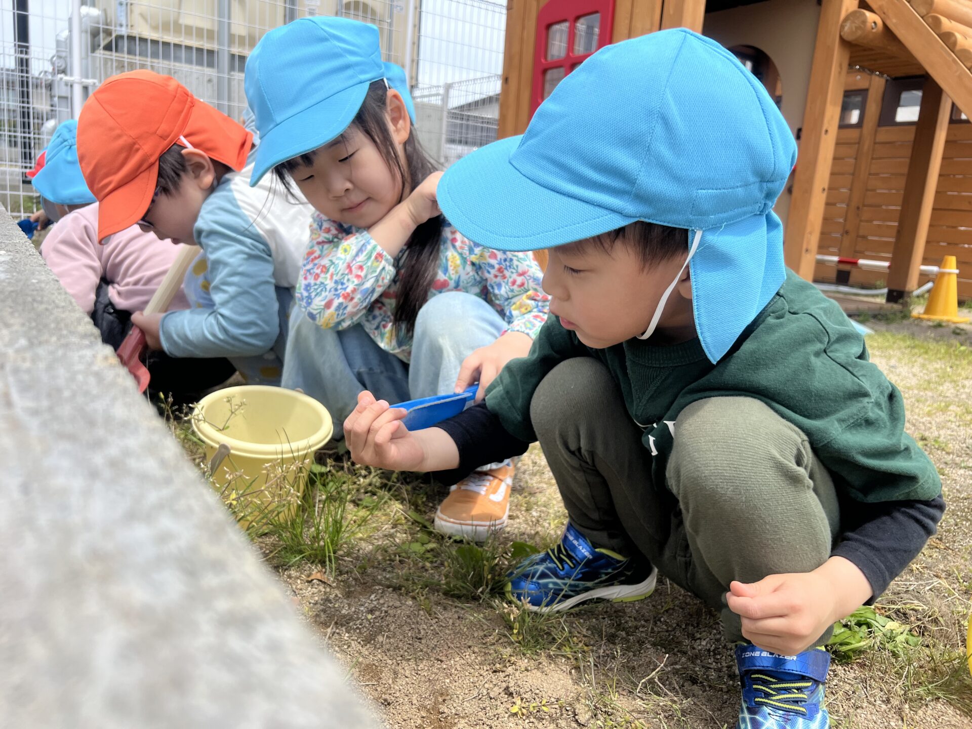 虫探しに夢中のそら組(4歳児)の子どもたちです。