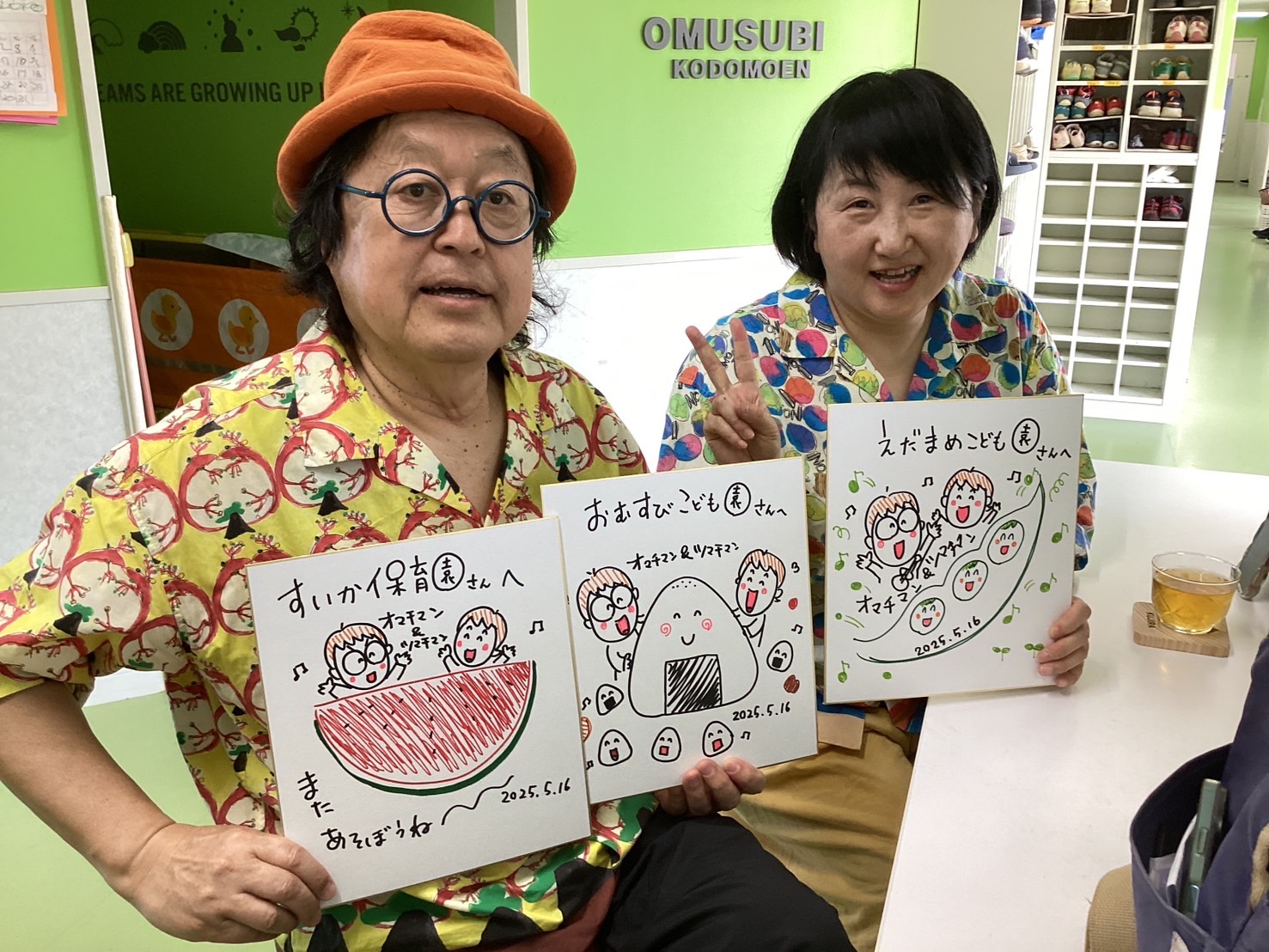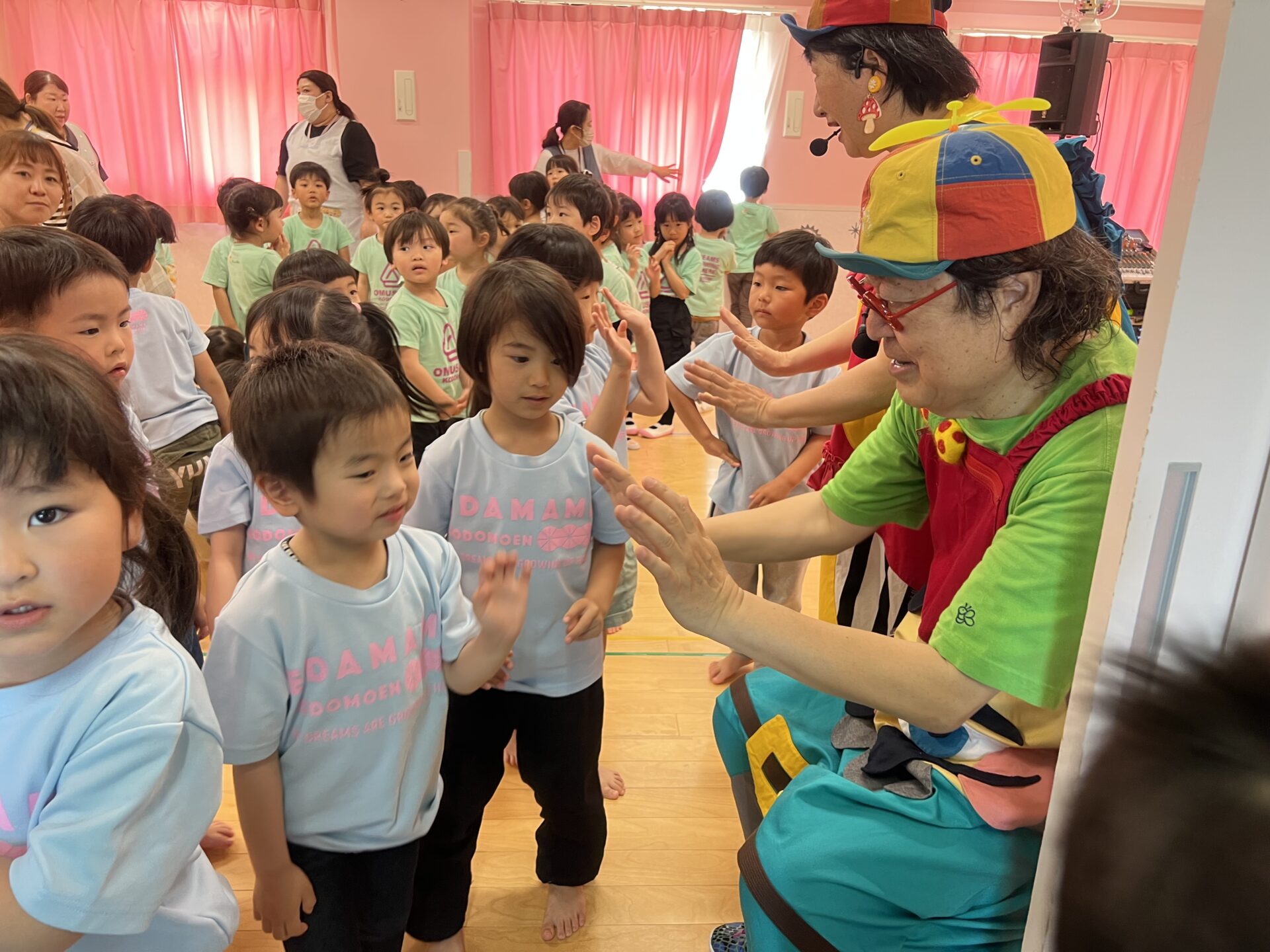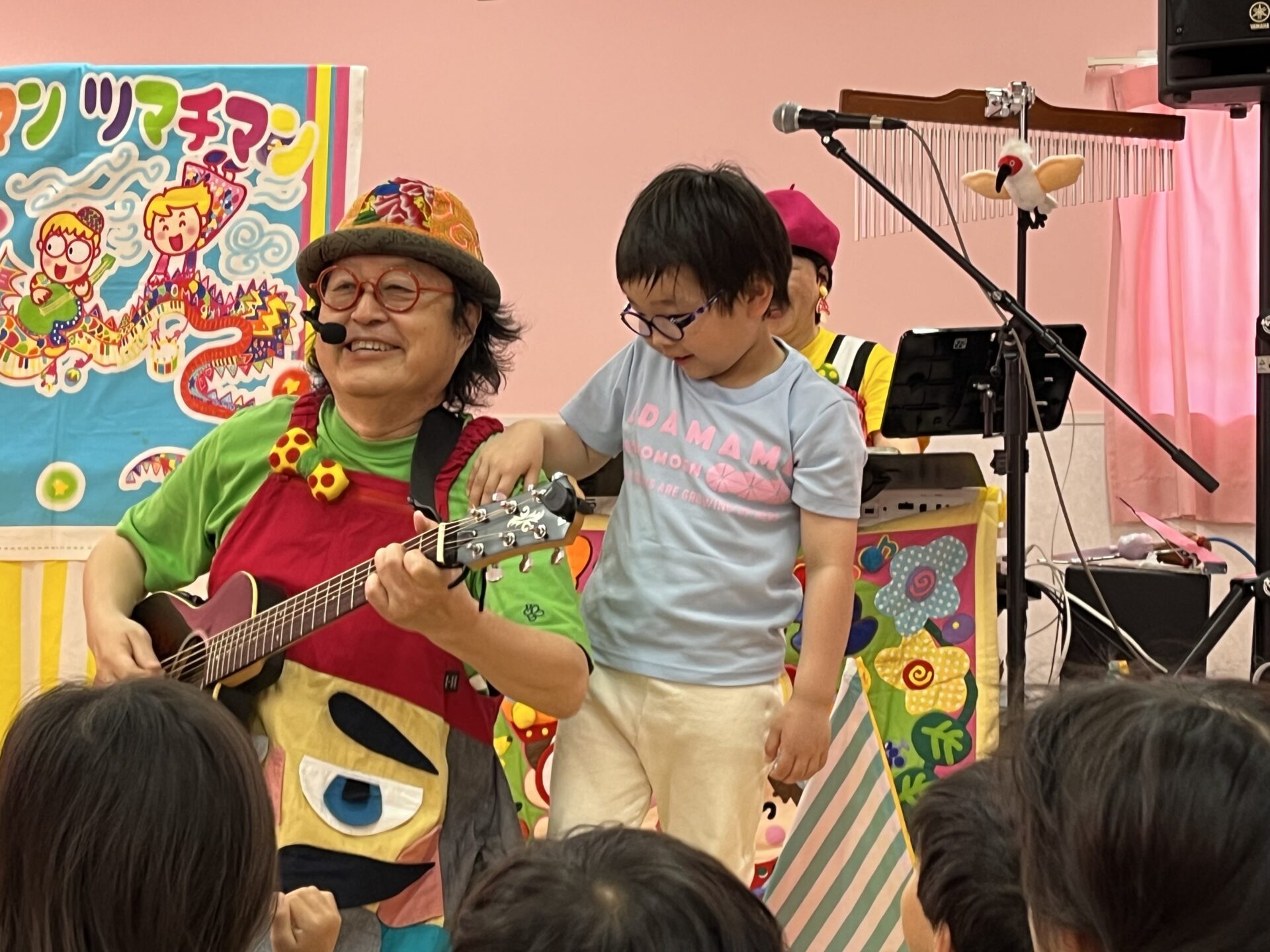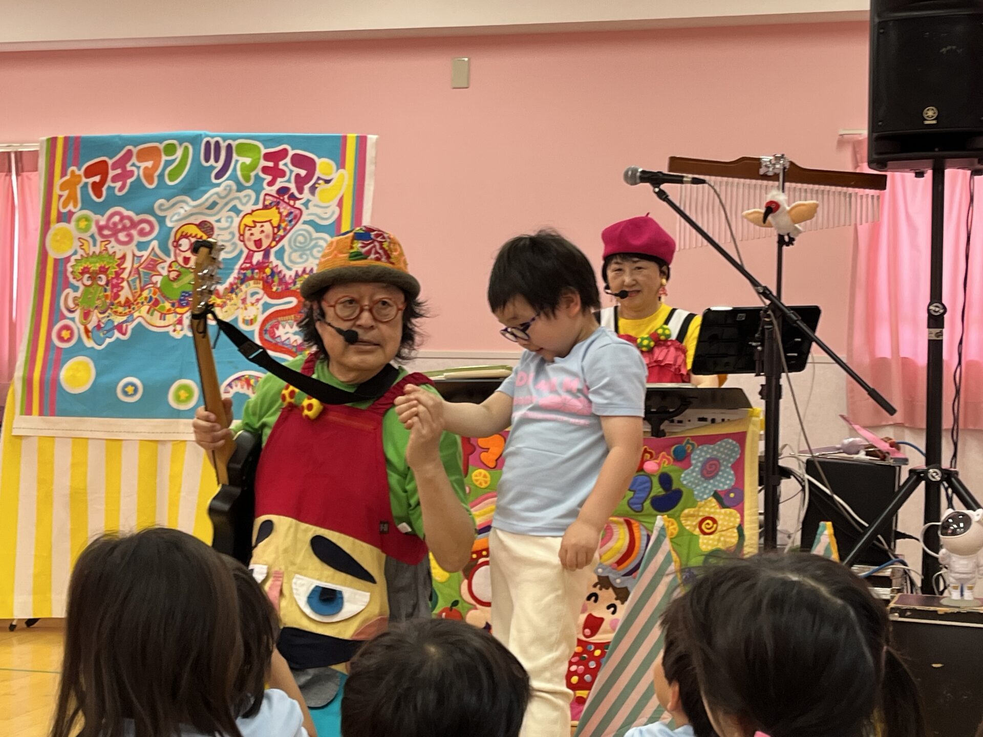 「お名前をおしえて!」とトップバッターで、ご指名を受けた子は、緊張からかオマチマンの手を、ぎゅ~っと離せないままでした・・・