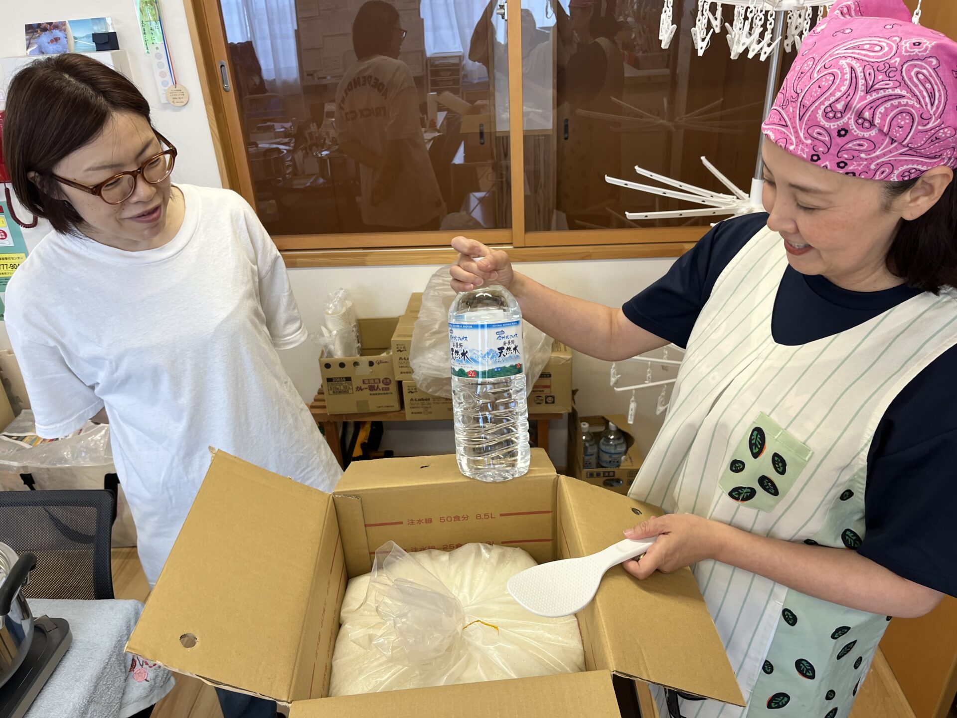 子どもたちの空腹を満たすために、事務室が給食室に早変わり!