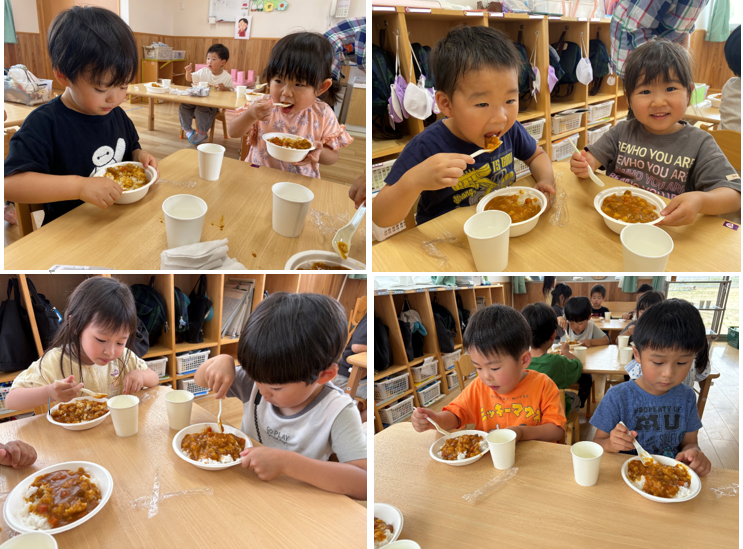 「おいしい!もっと食べたいな。」「いつものカレーがいい。」など、さまざまな声が聞かれたようですが、完食する子がほとんどでした。
