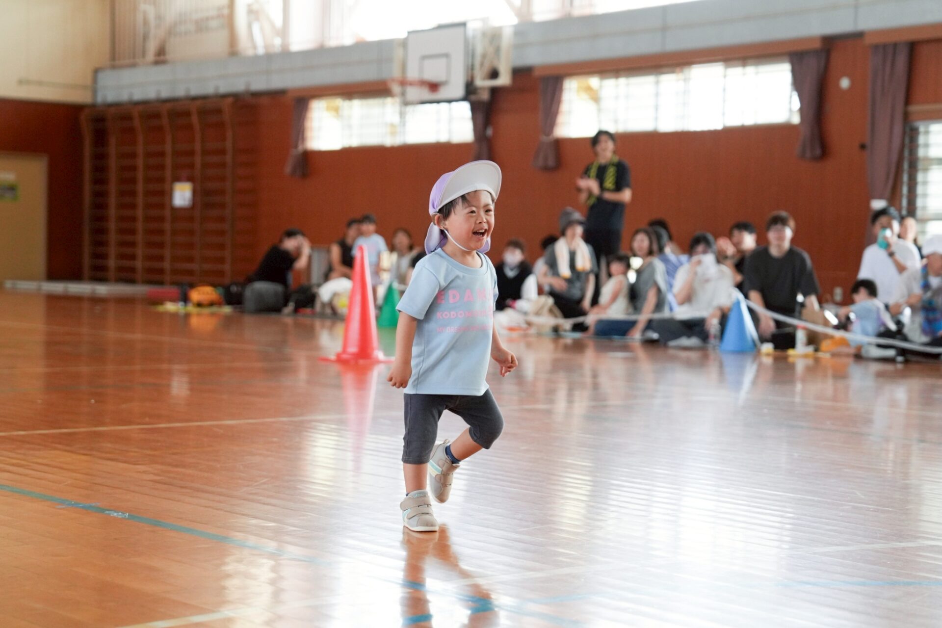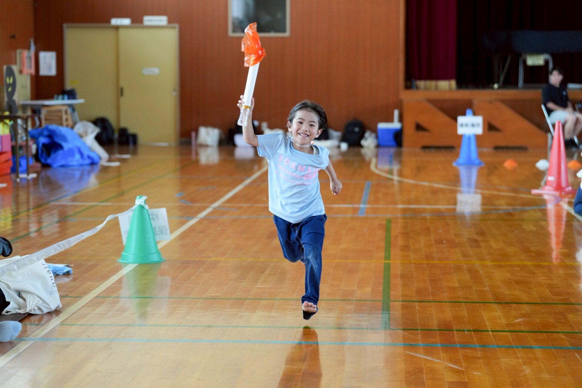 ゴールで待っている、おうちの方に向って、全力疾走🏃➡️