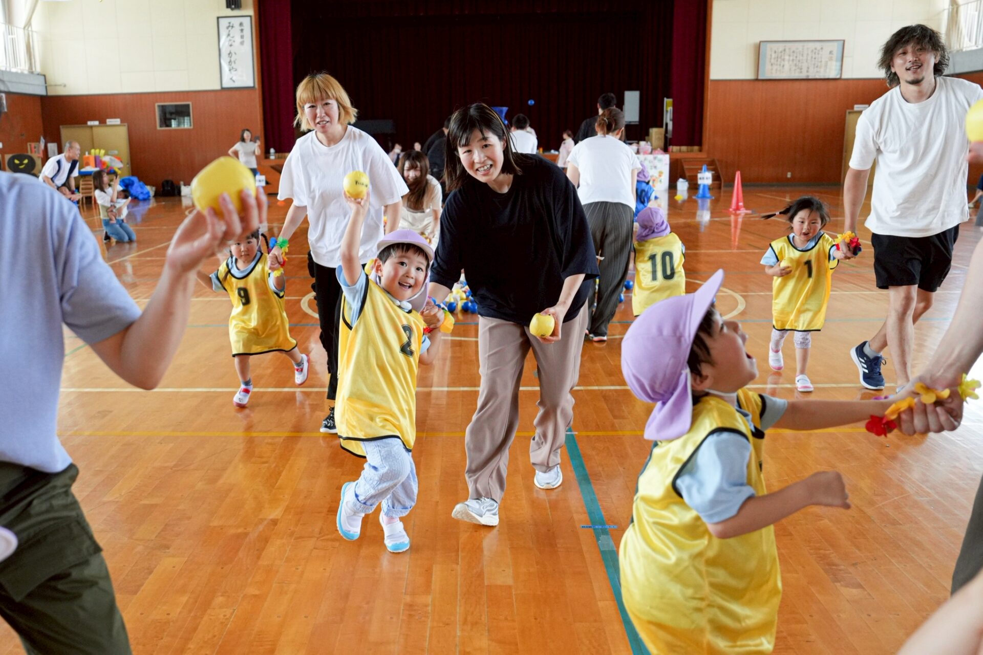 「玉入れ(親子で両手を結わえる)」