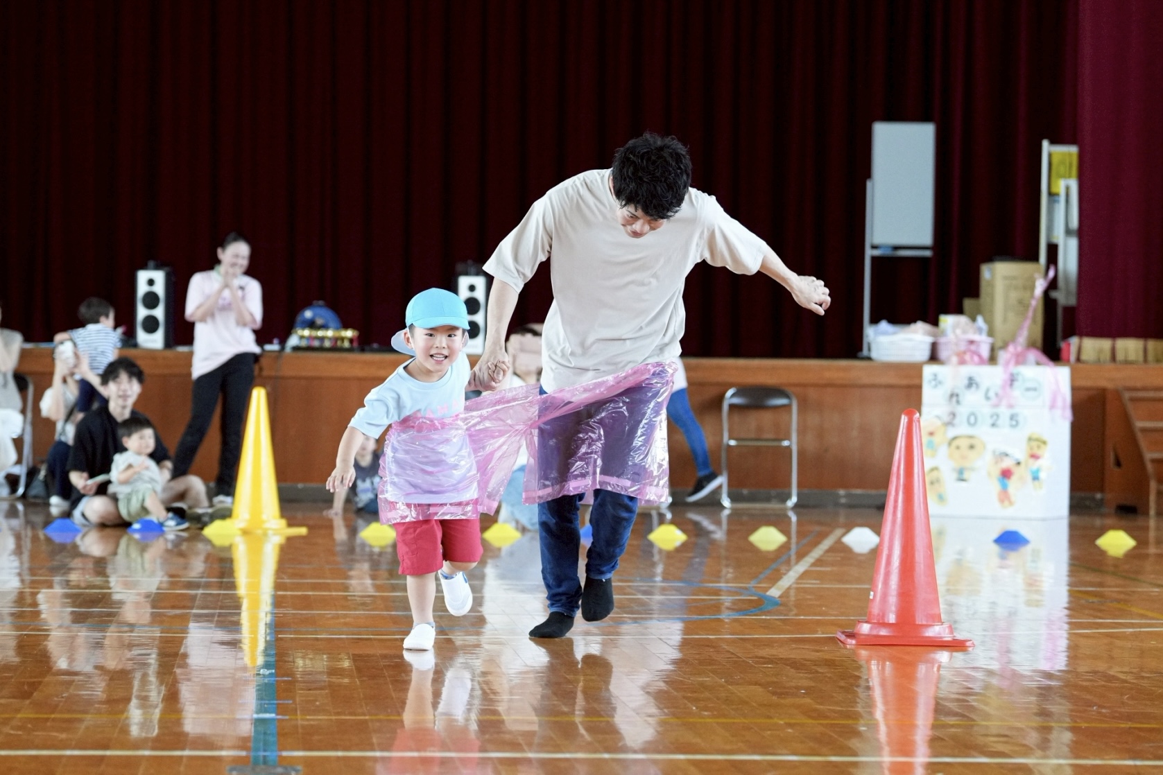 「デカパンリレー(一枚のパンツに親子で一緒に入る)」