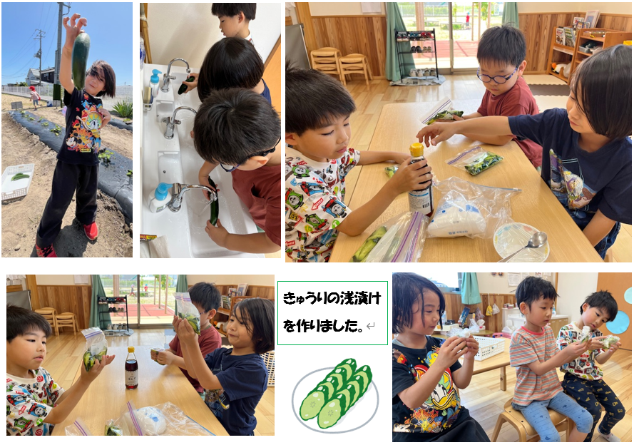 2025.06.25 ブログ きゅうりの収穫 日に日に大きくなり、無事に収穫の時を迎えました。 自慢のきゅうりを持って、みんなに報告して回ります。 きれいに洗って、さっそく味見をしました🔪 もうすぐトマトも赤くなりそうです。次のレシピも考案中! 一覧へ戻る