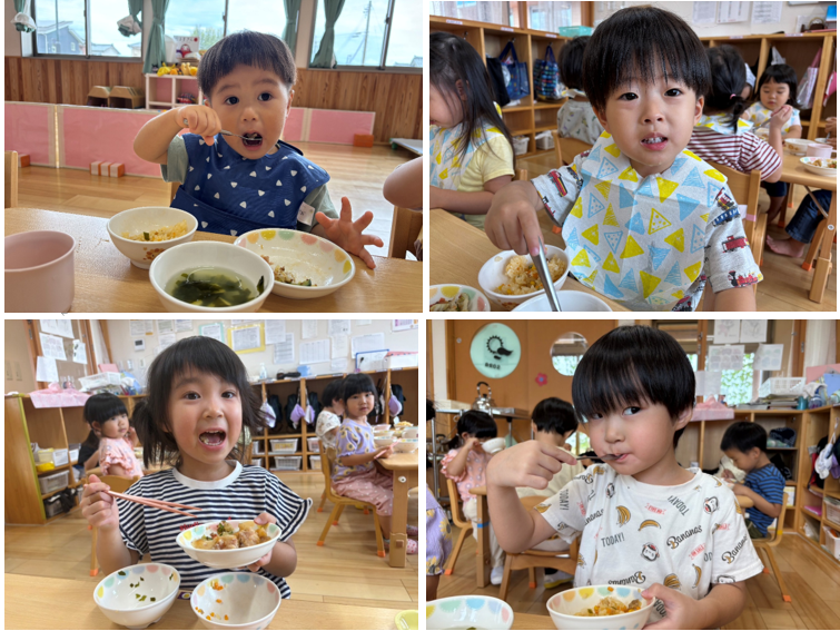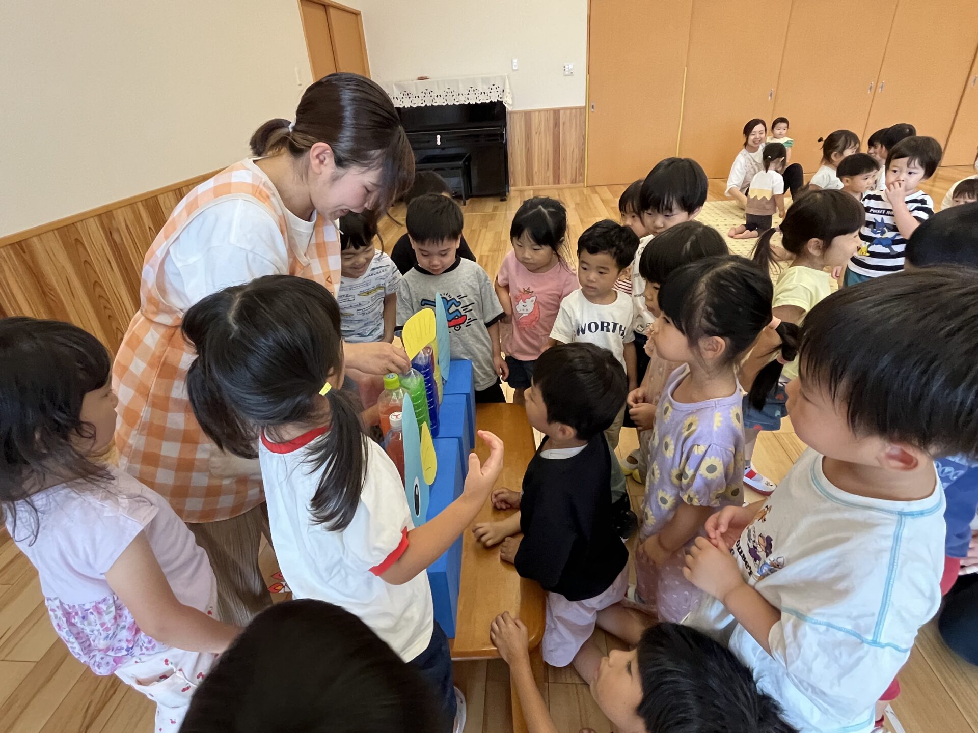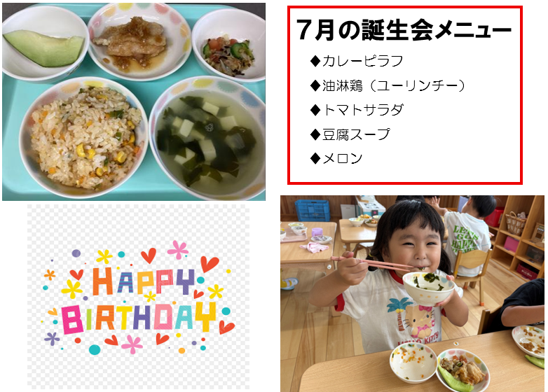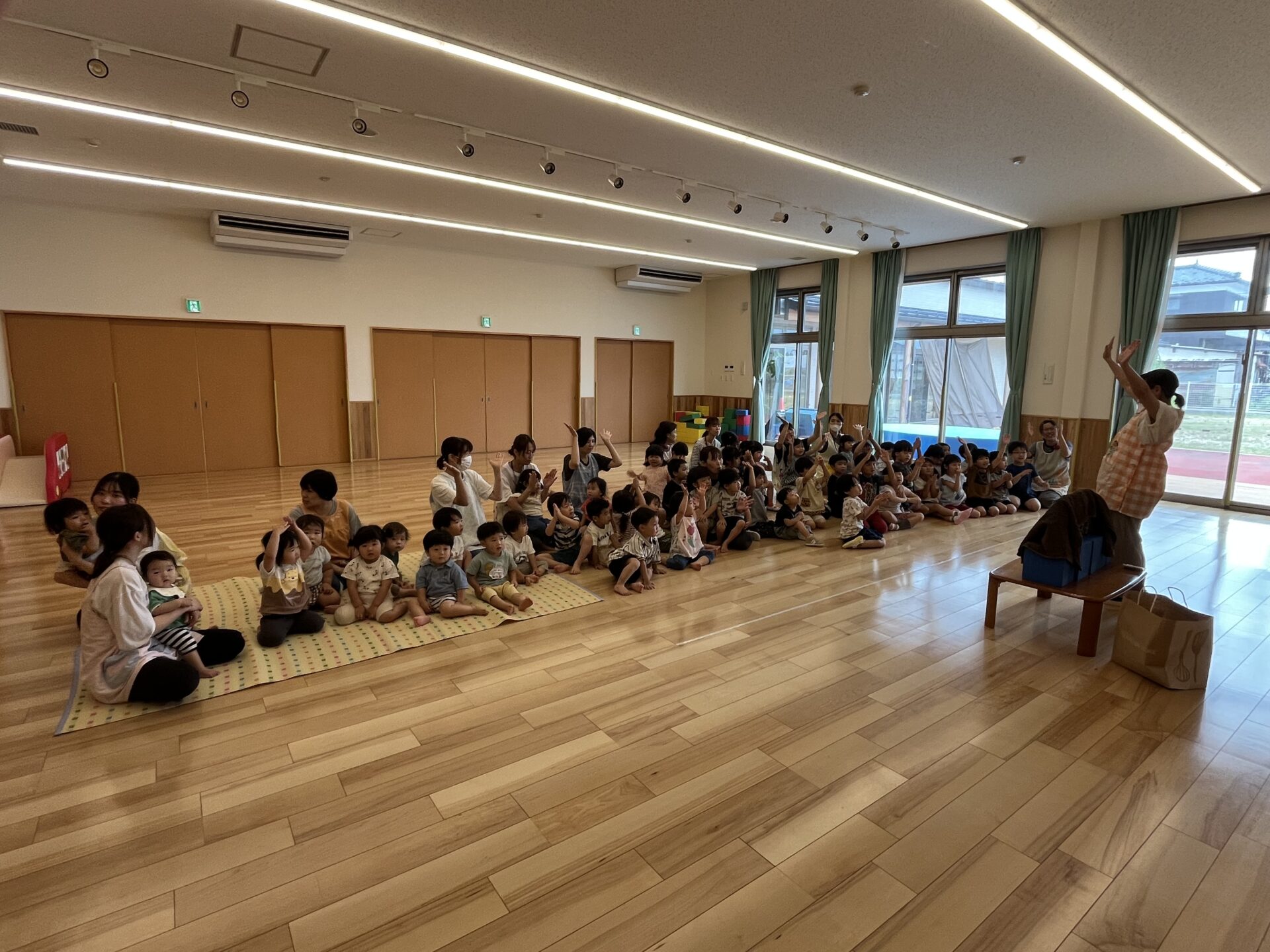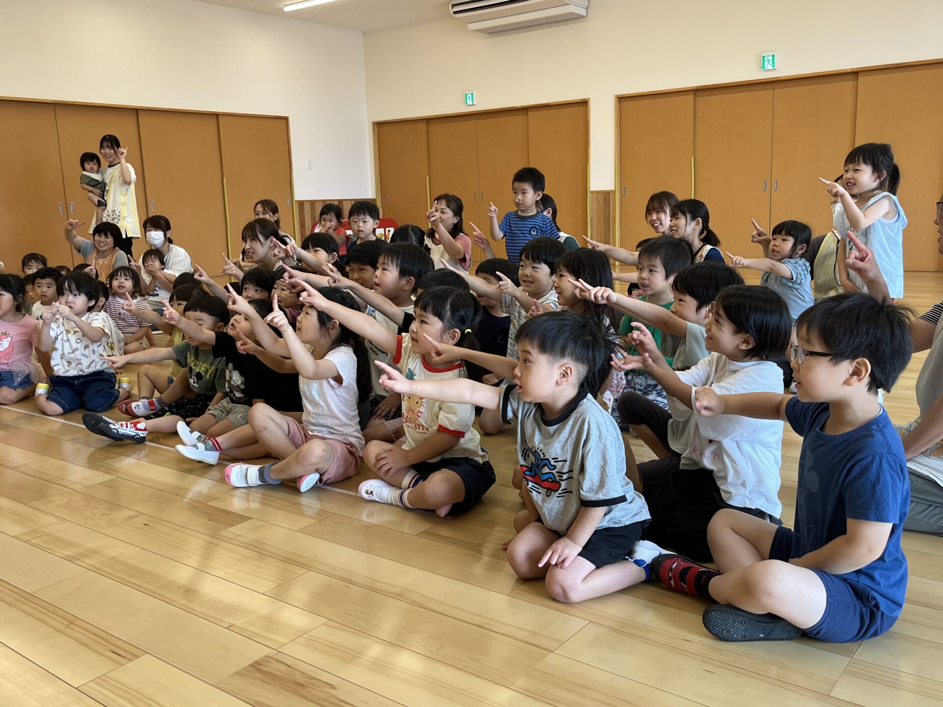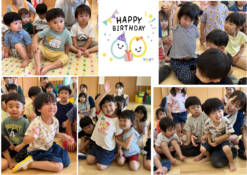 暑さに負けず、元気いっぱいのえだまめこども園で、7月の誕生会がありました。
