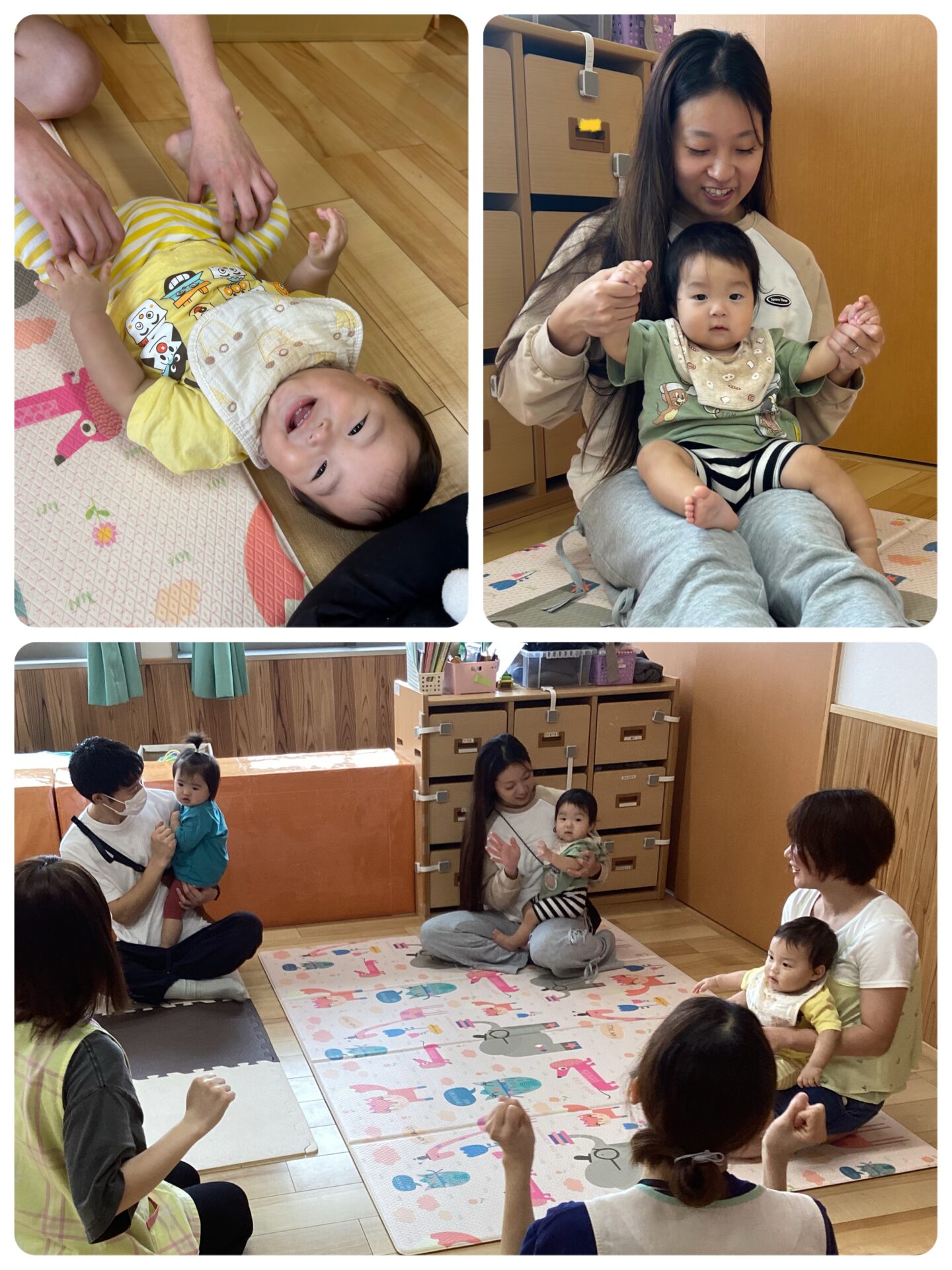 園でしている、お気に入りの 『ばすにのって』『もみもみマッサージ』の、ふれあい遊びや手遊びを今日は、お家の方と楽しみました🙌