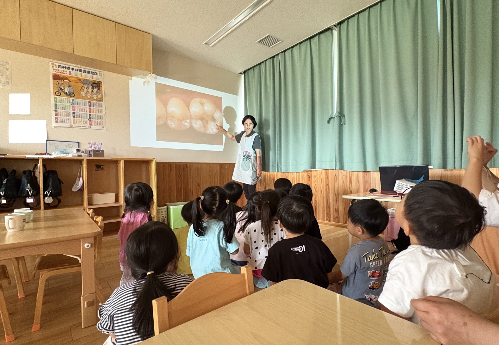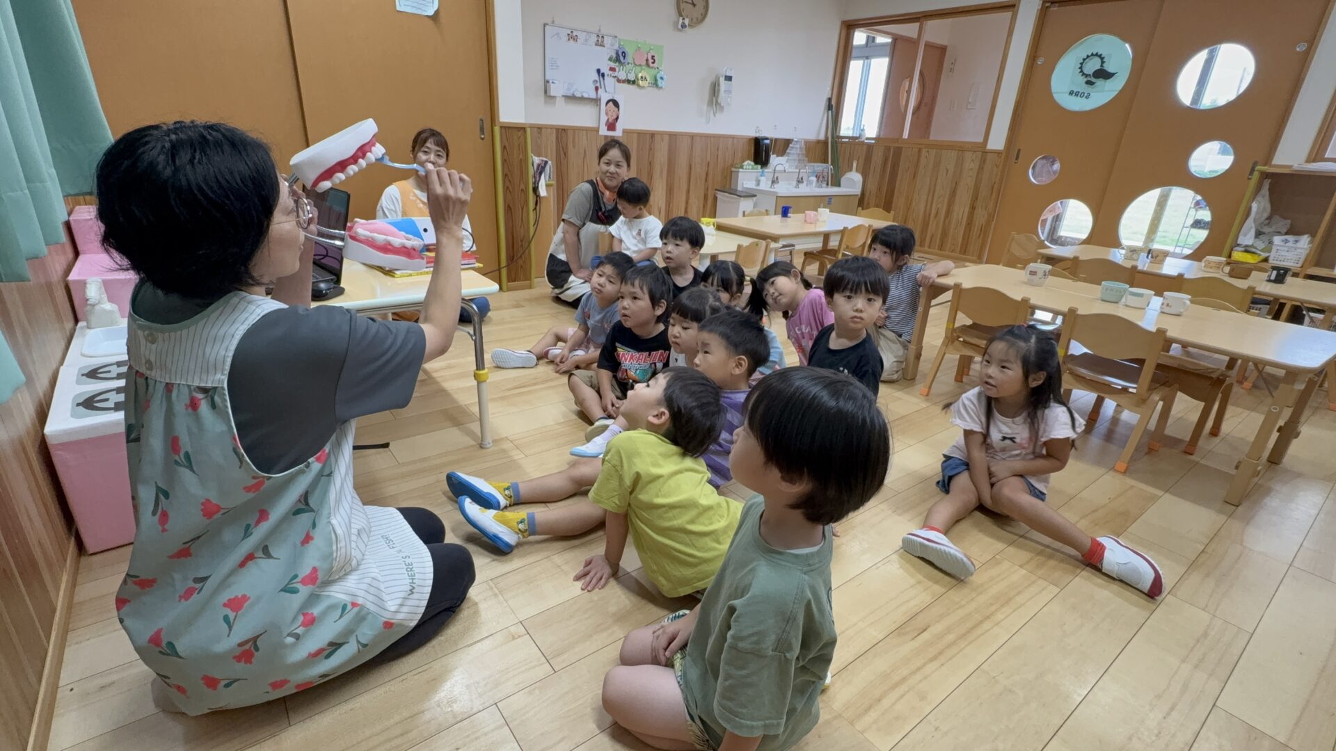 先日、新潟の姉妹園(すいか保育園、おむすびこども園)を巡回している、看護師による【歯みがき指導】を行いました。