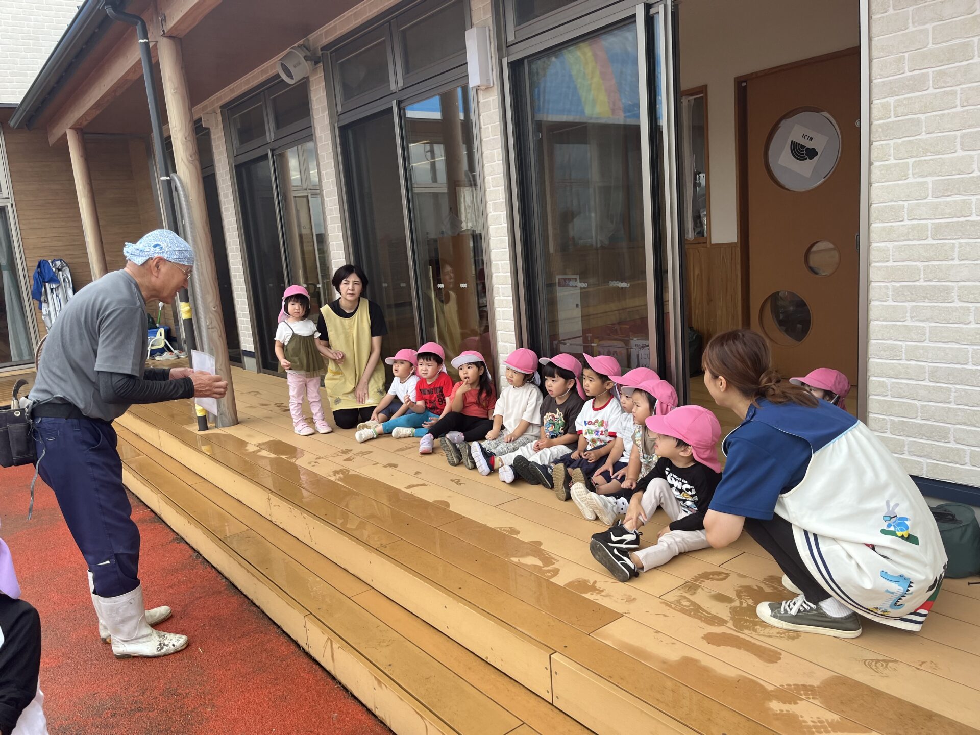 こども園の建設が始まった際、園庭の片隅にひとつだけ株が残っていたようで、地面の下でひっそりと、いつか太陽の光を浴びるのを待ち望んでいたことと思います。