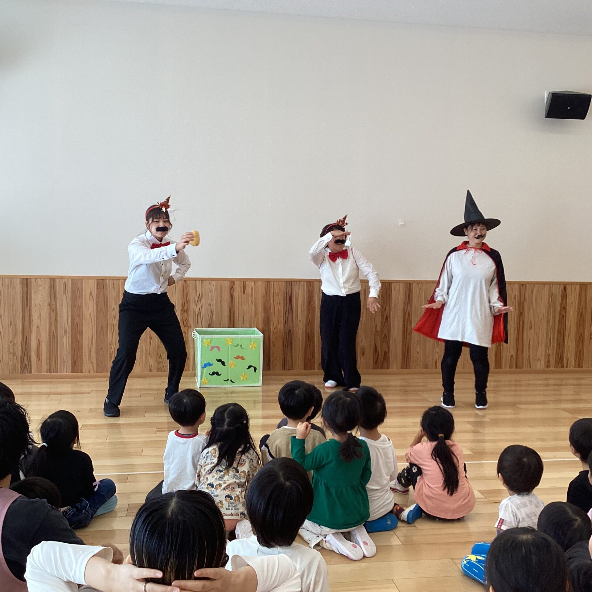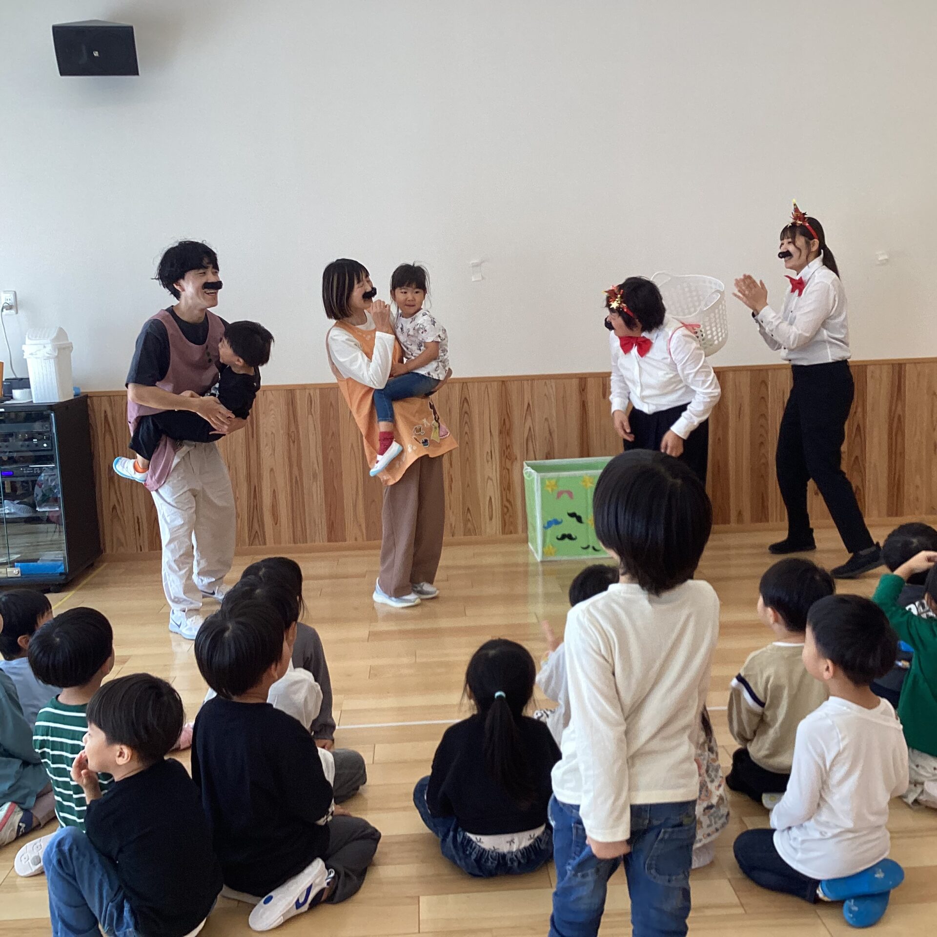 以前の誕生会に登場したMr.クイズマンや、保育参加に来てくださっていた保護者様も加わり、ホールは笑いと歓声で包まれました😆
