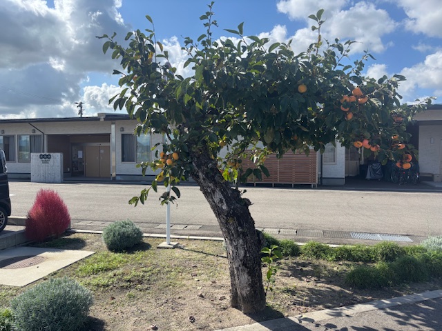えだまめこども園の駐車場脇には、柿の木があります。