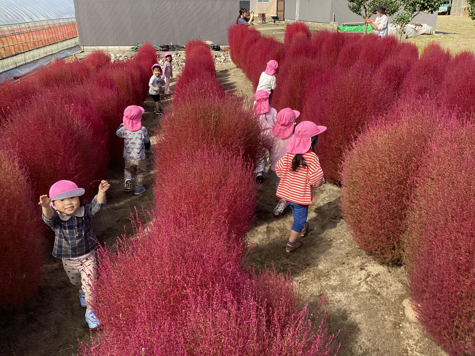毎年、近隣の方にご招待いただくコキア畑、真っ赤な世界の中でする「かくれんぼ」も大好きです。