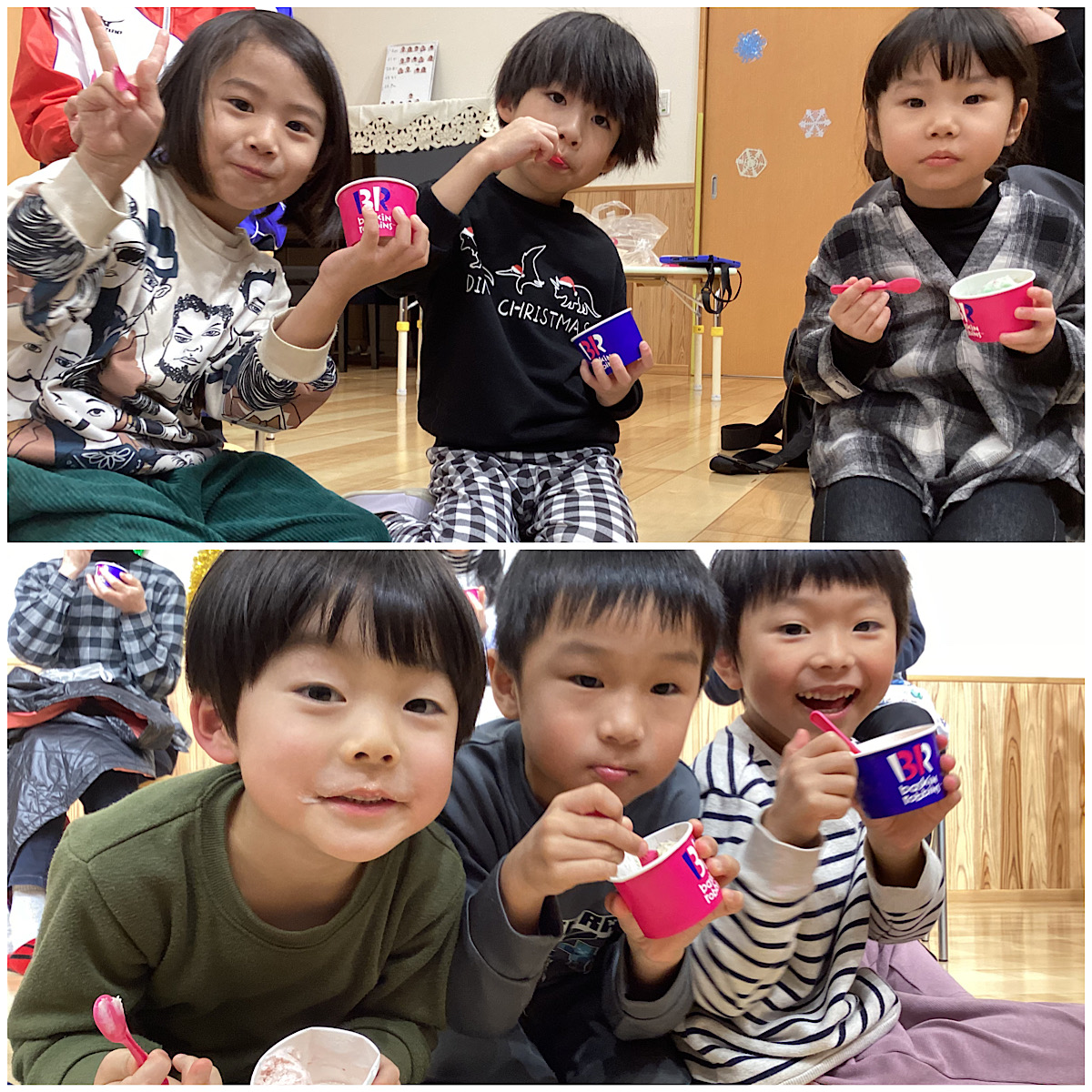 地域の方やお祖父様、お祖母様と一緒に輪になって、アイスクリームを食べました😋