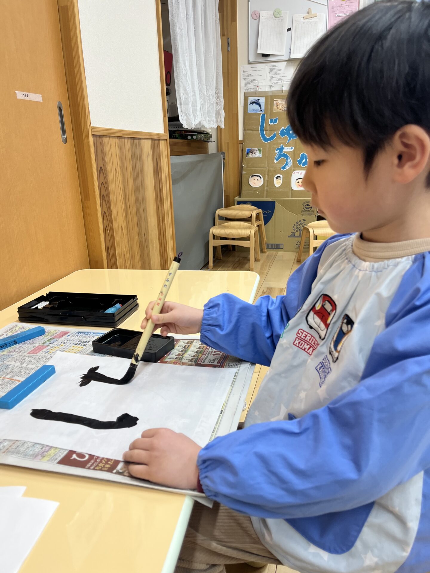 新しい年を迎え、つき組(5歳児)が取り組んだことは『書き初め』です。