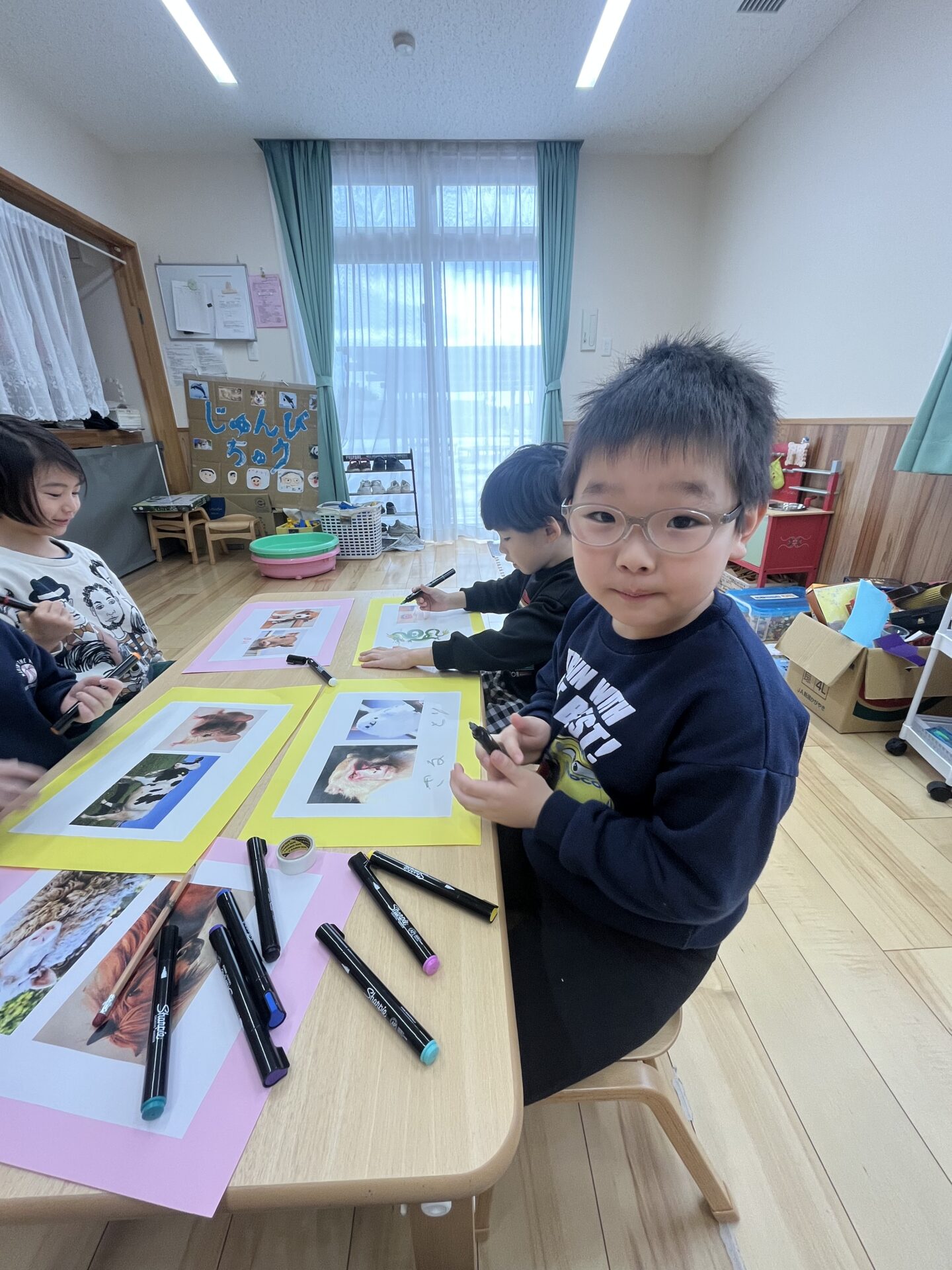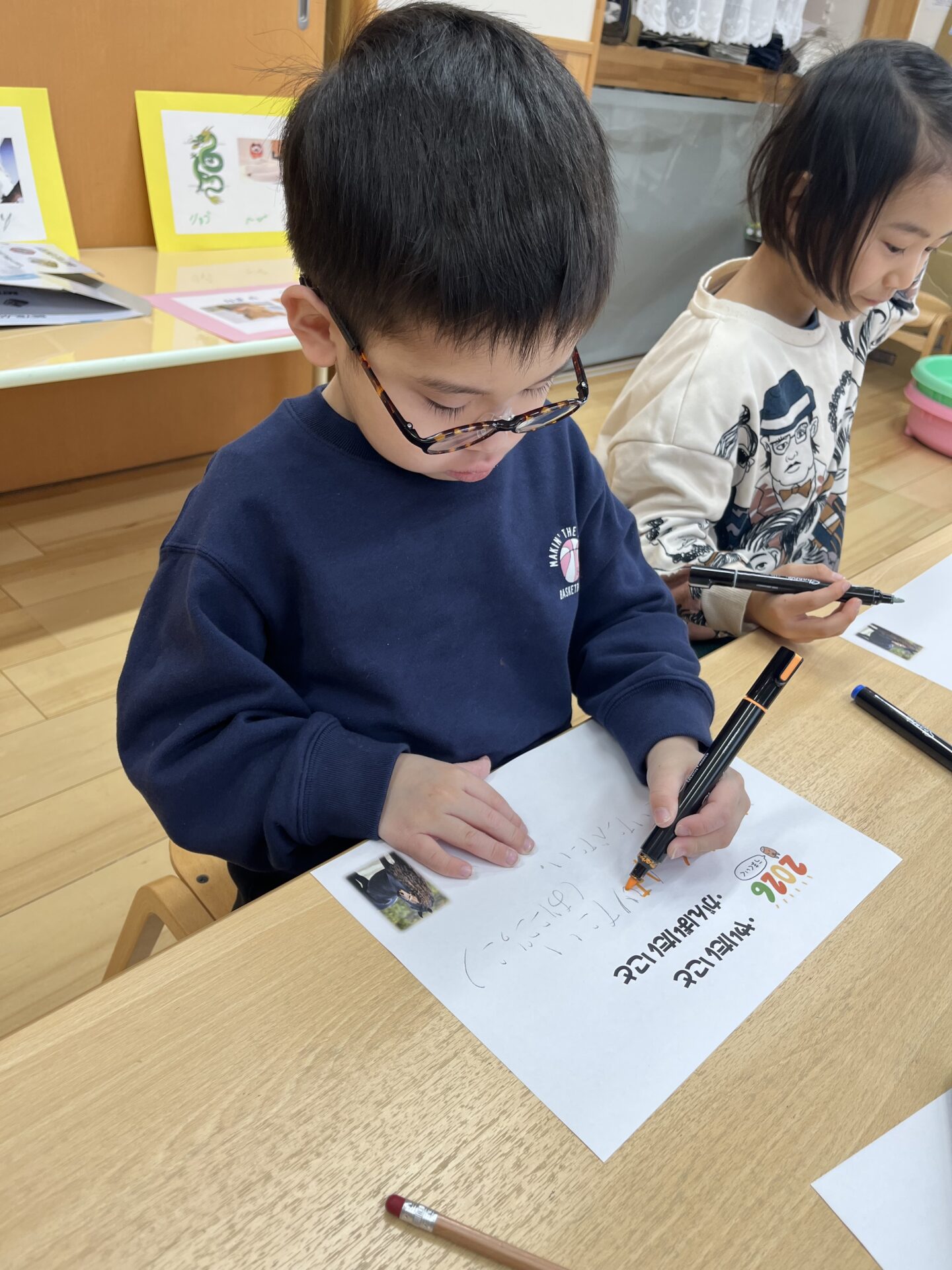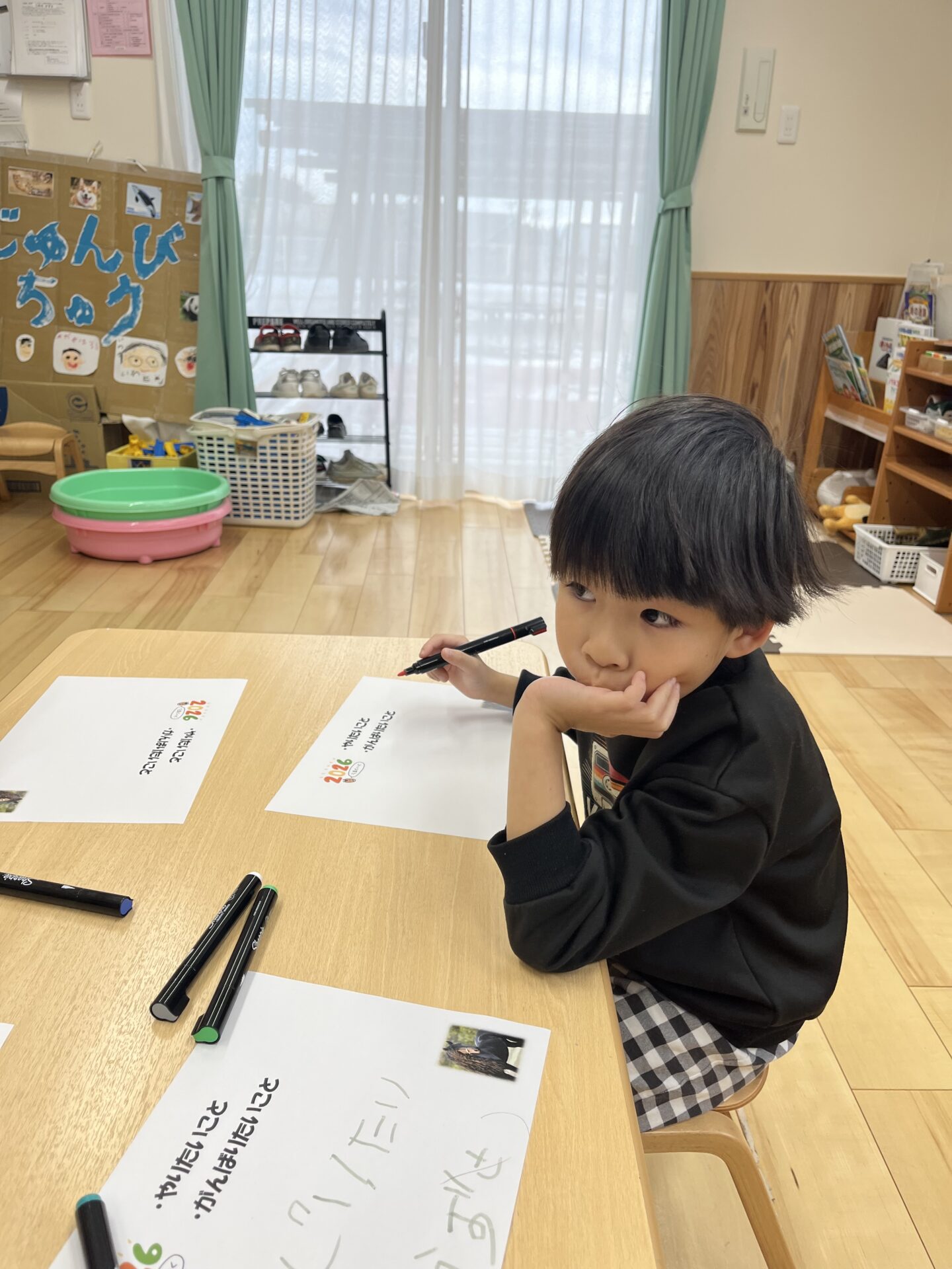 「やりたいこと」「がんばりたいこと」が、すぐに思いついて書き始める子、たくさん考えて書き始める子など、それぞれのペースで今年の抱負を書きました🌟