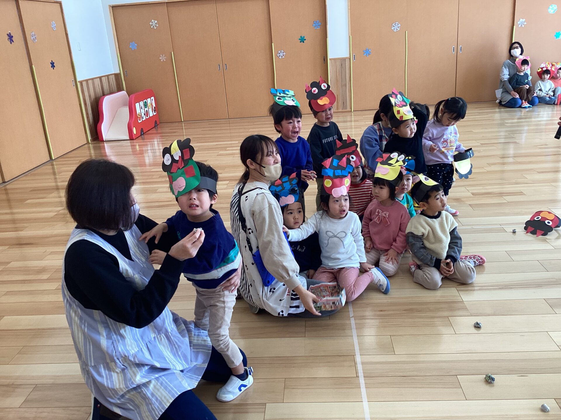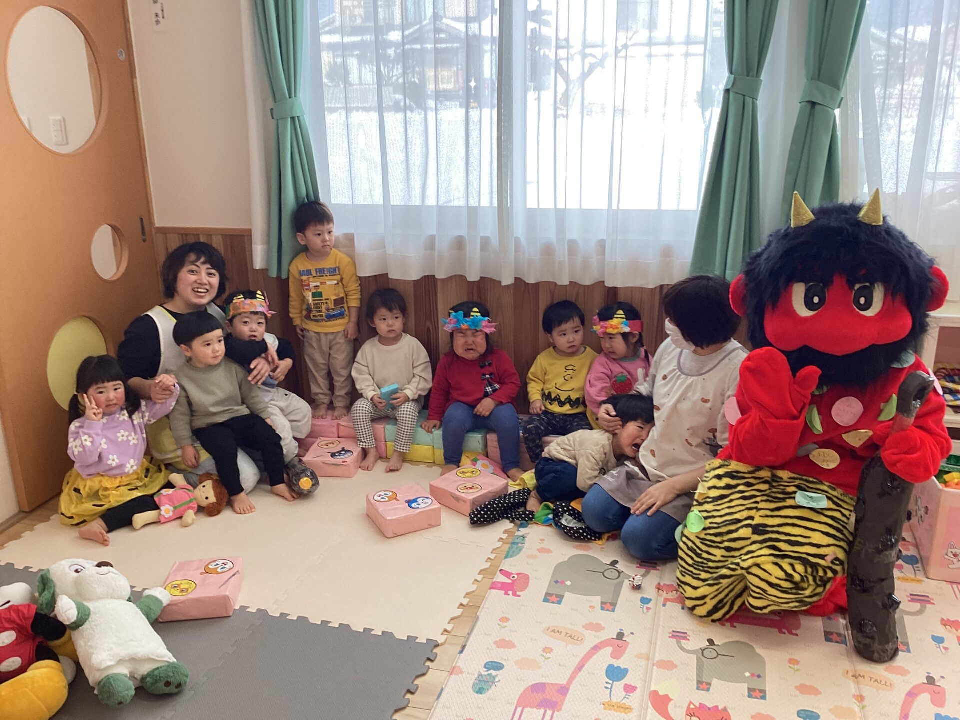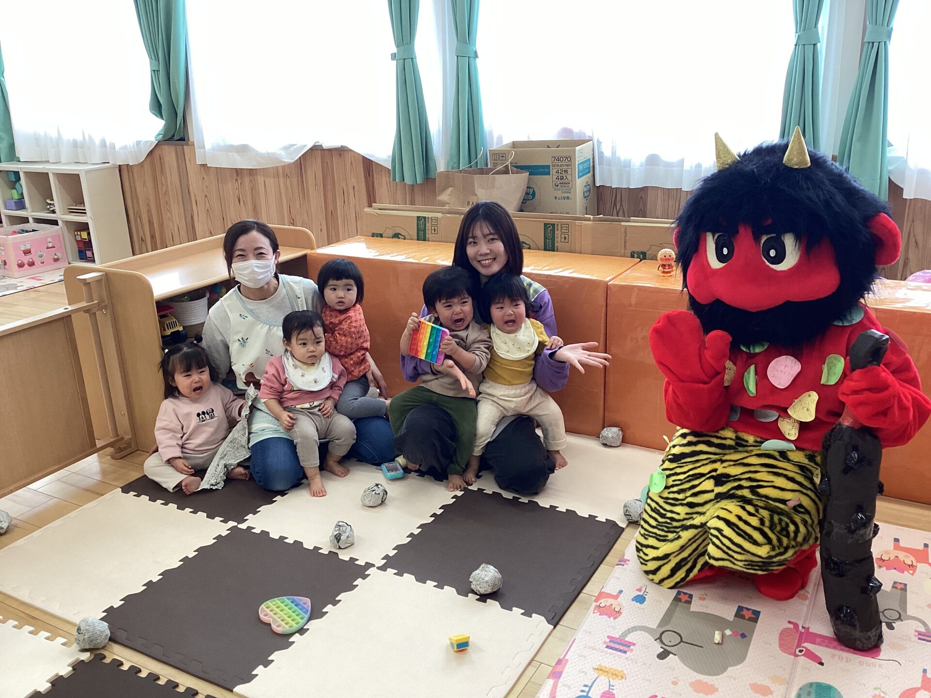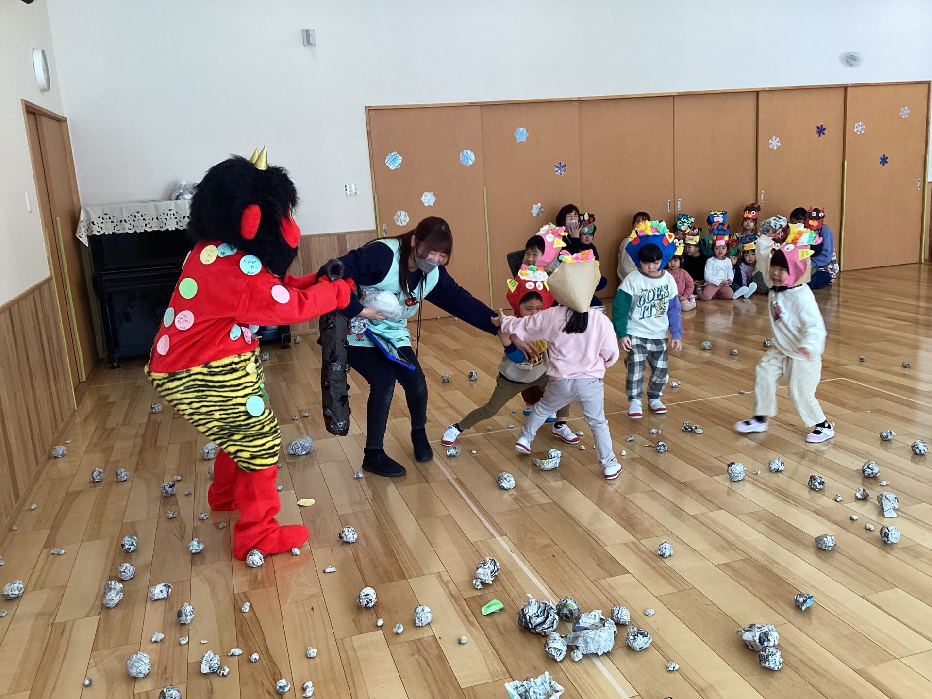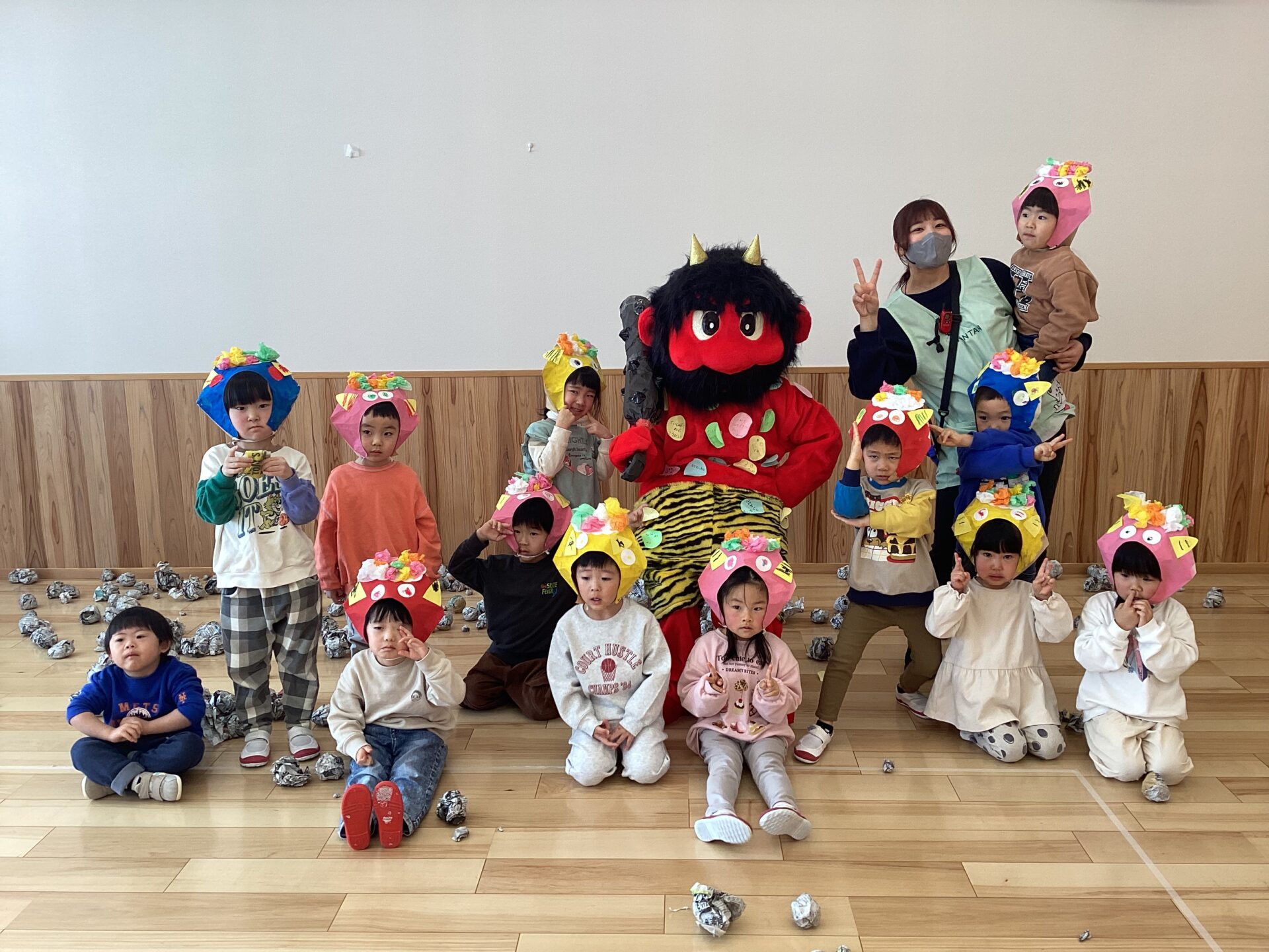節分の日に、えだまめこども園の豆まき会を行いました✨