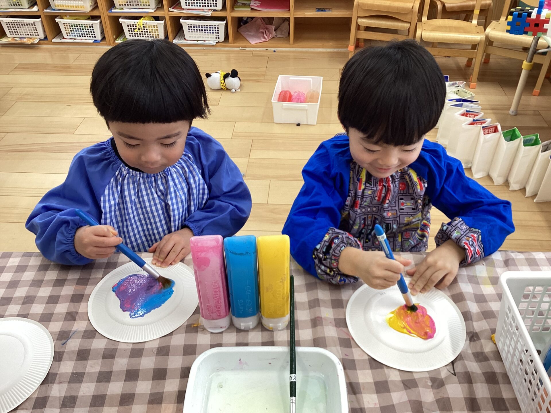 自分の好きな色を選んで、まぜると何色になるのか???実験しました✨