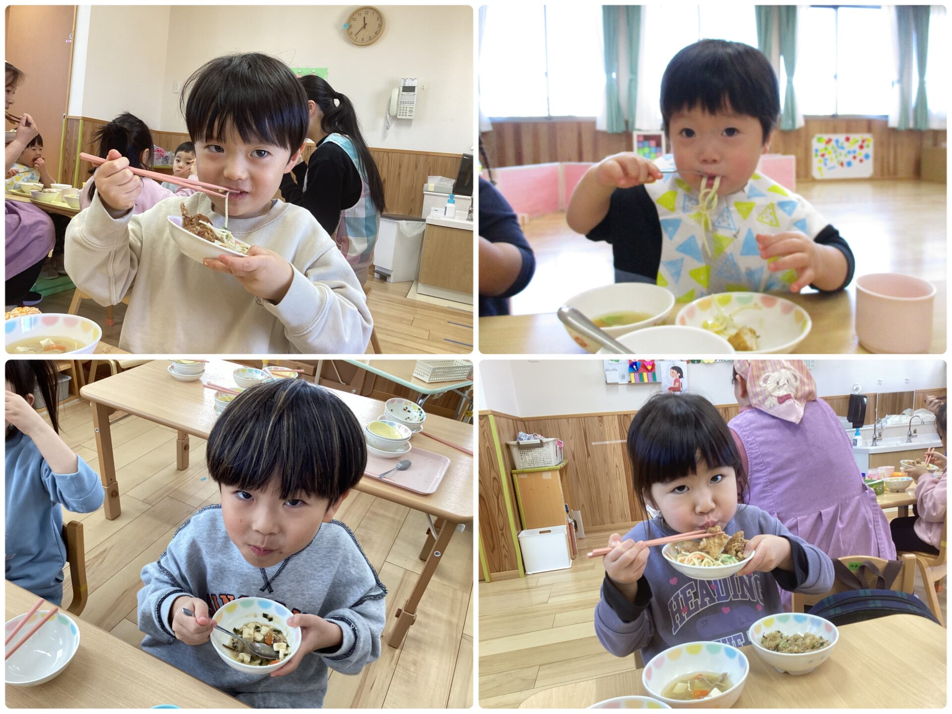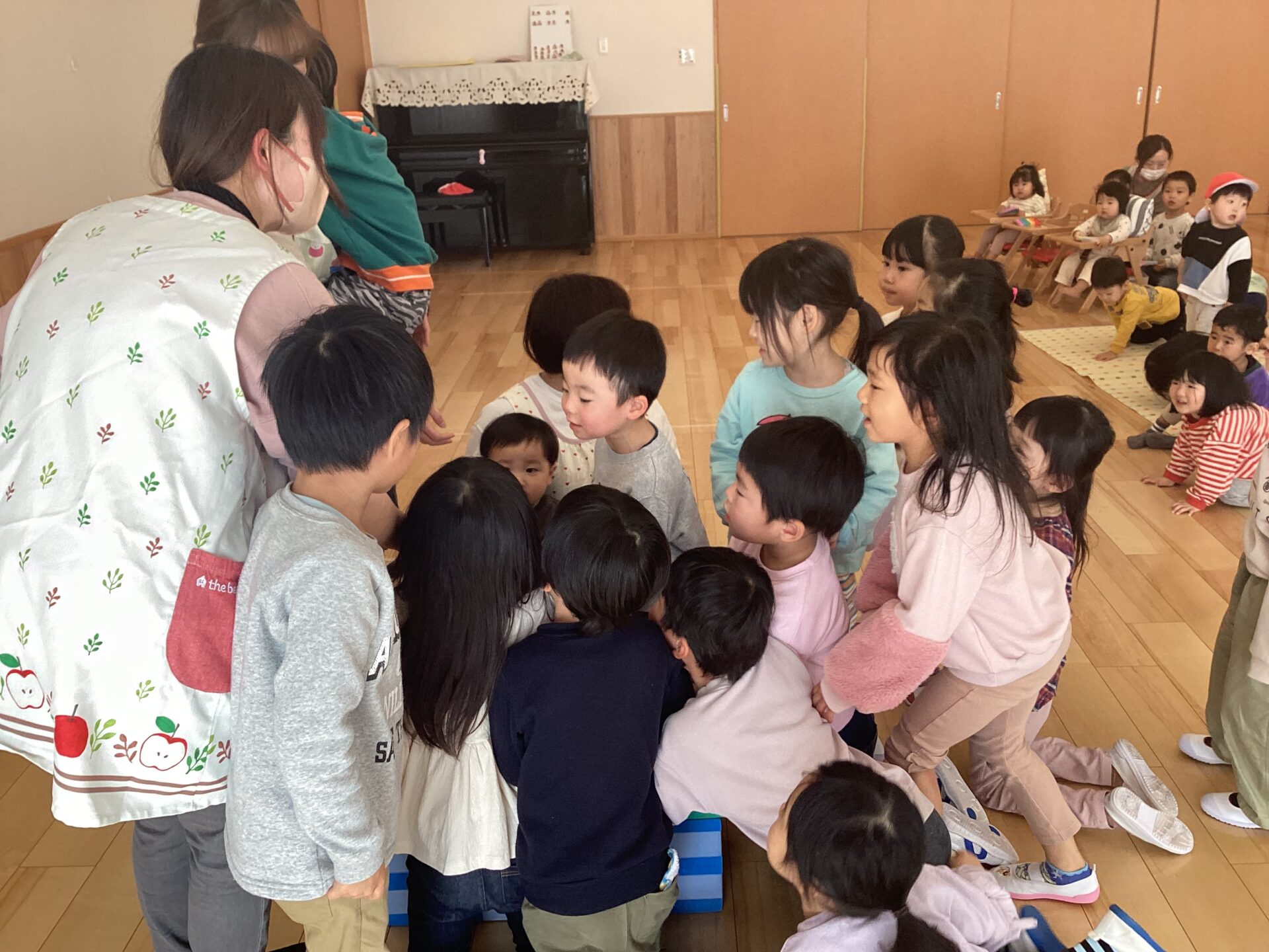えだまめこども園では、2月の誕生会があり、4名の誕生児をみんなでお祝いしました。