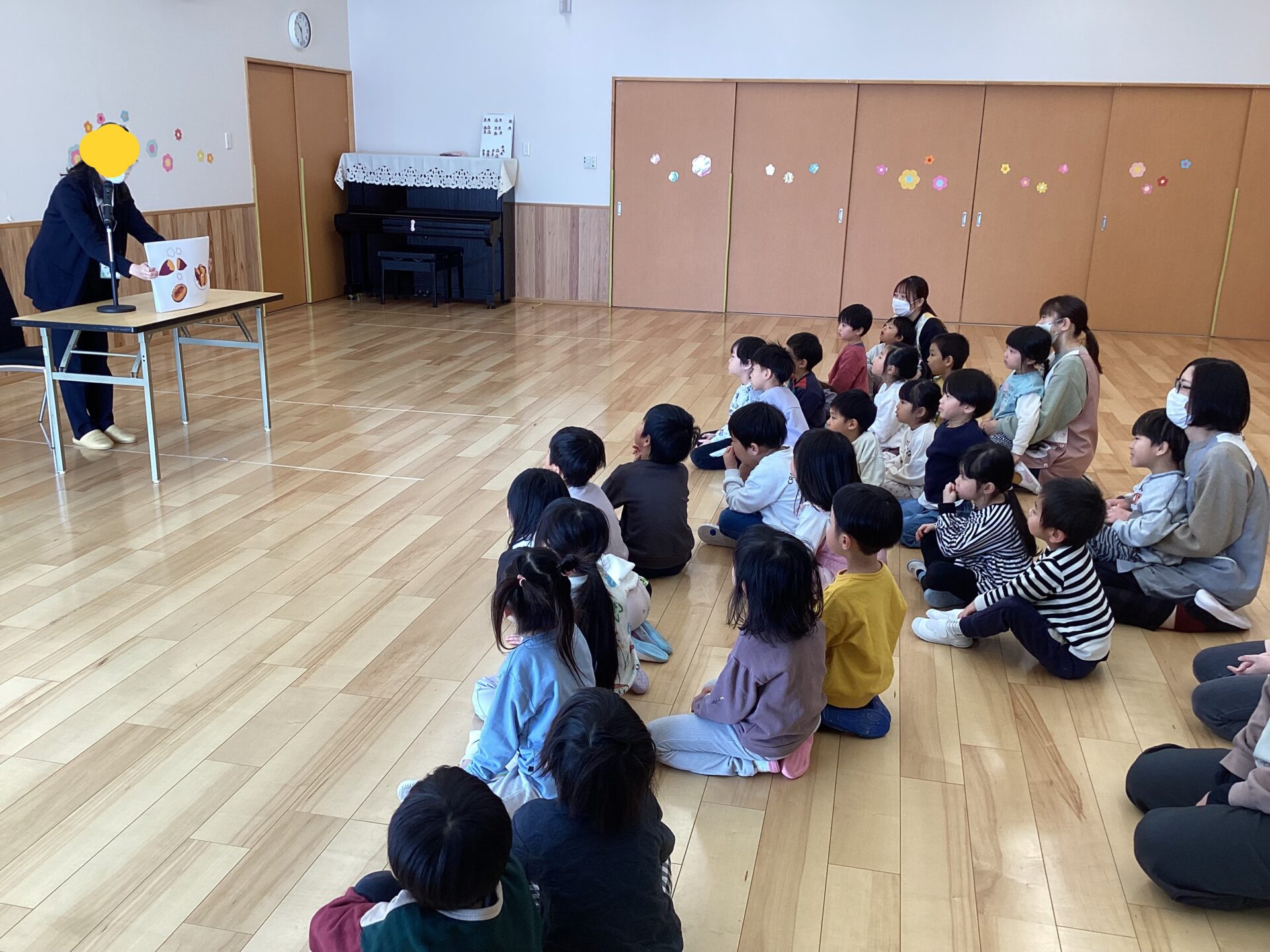 JA職員様より、お米や野菜・果物・農畜産物など、食べ物について紙芝居で楽しく教えてもらいました。
