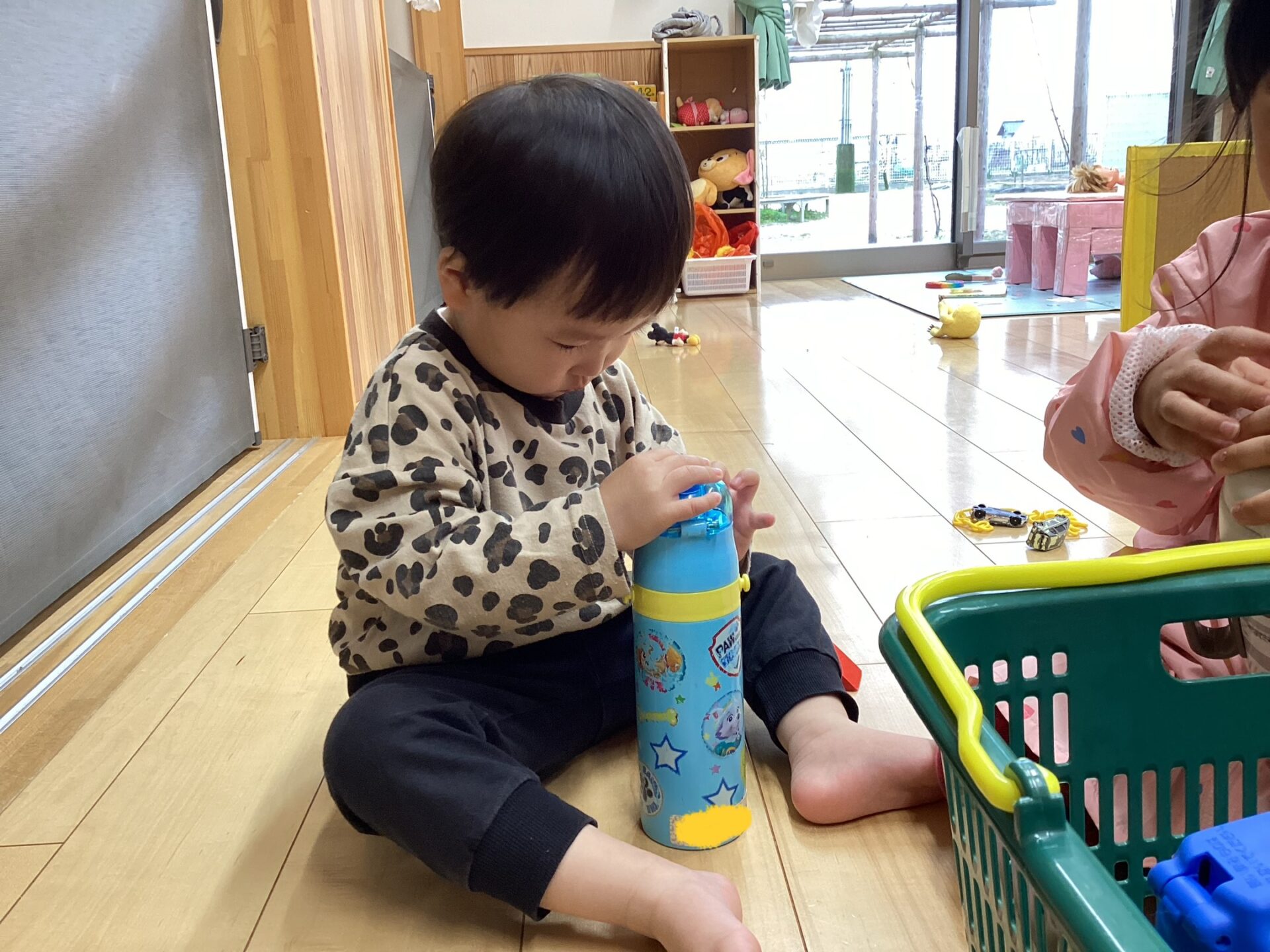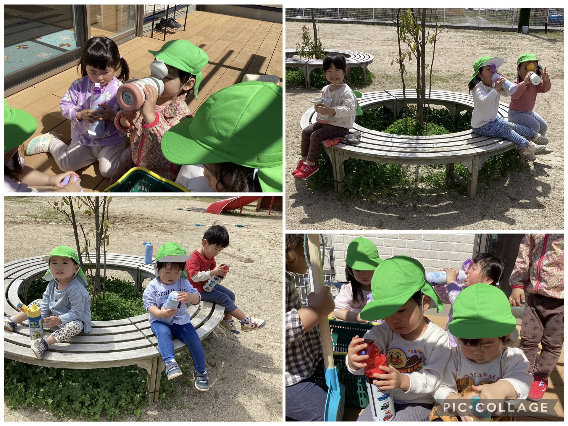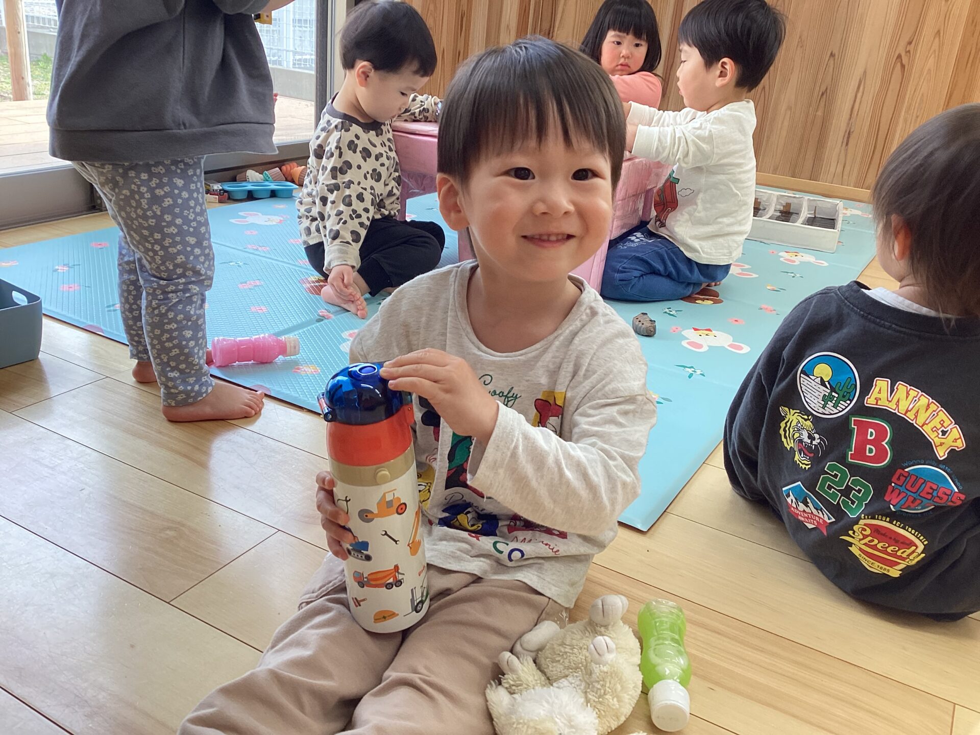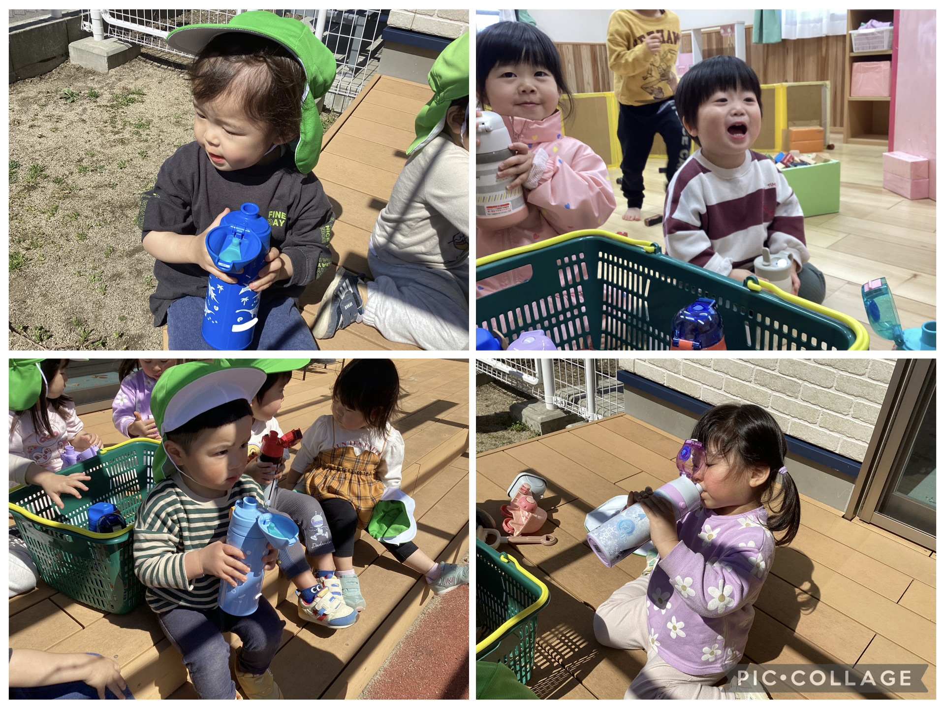 お兄さんお姉さんたちが、水筒を持っている姿をうらやましそうに見ていた、にじ組さん・・・