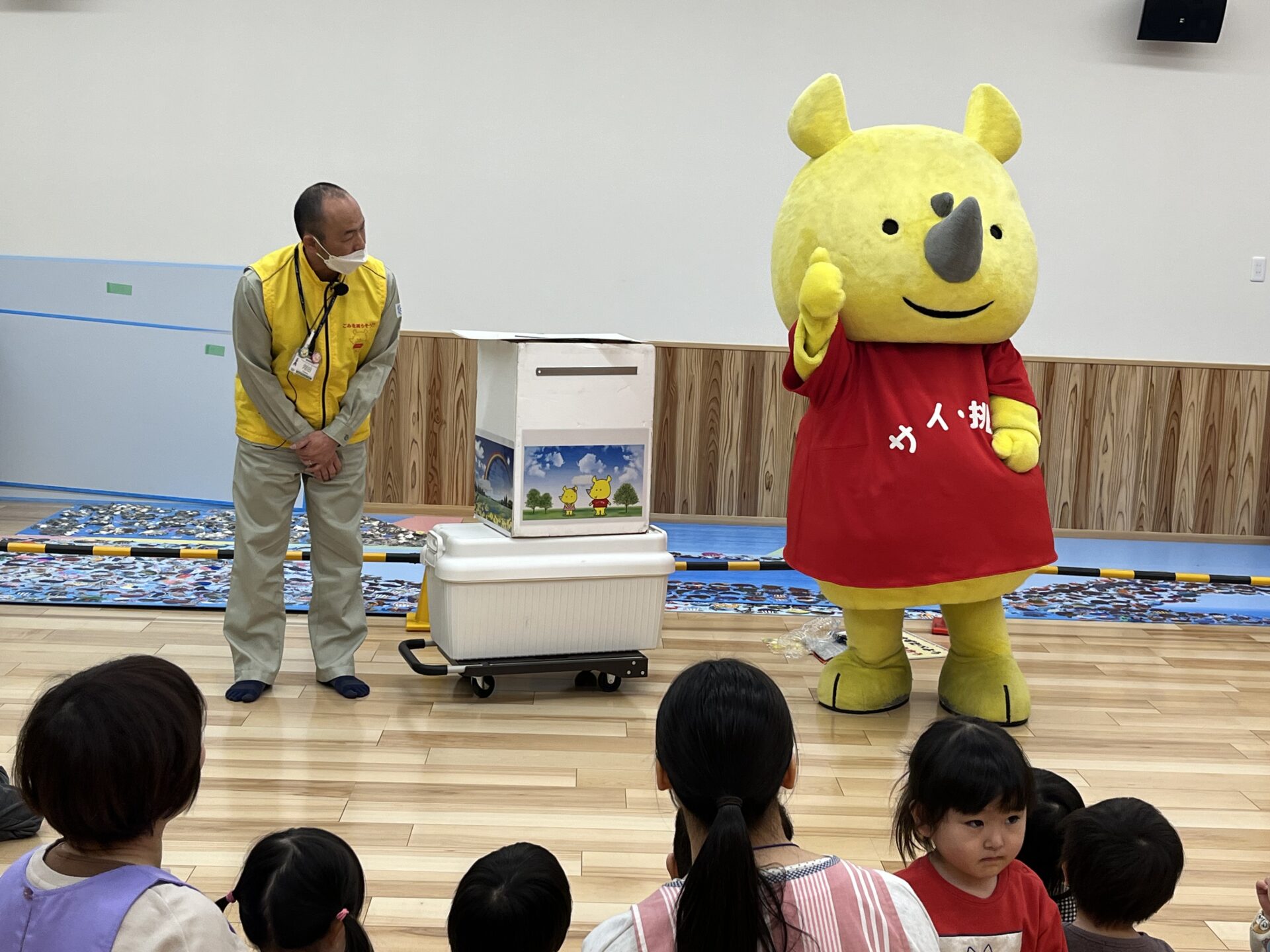 えだまめぐみ(0歳児)と、うみぐみ(1歳児)もサイチョくんとの触れ合いを楽しみました😊